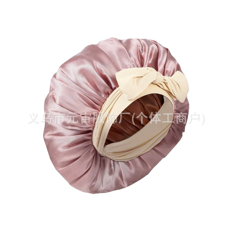 아마존 폭발 페이트 활 리본 모조 실크 넓은 챙이 문 샤워 캡 뷰티 헤어 밴드 큰 나이트캡