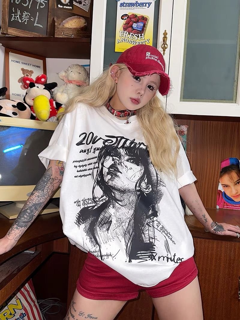 디자인 센스 틈새 힙합 반팔 티셔츠 여성 2025 년 새 여름 느슨한 오버 사이즈 반팔 화이트 탑스토어 가기