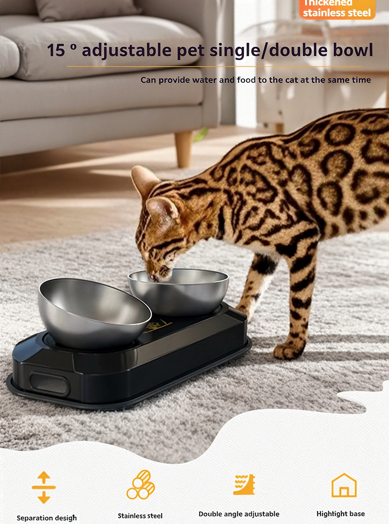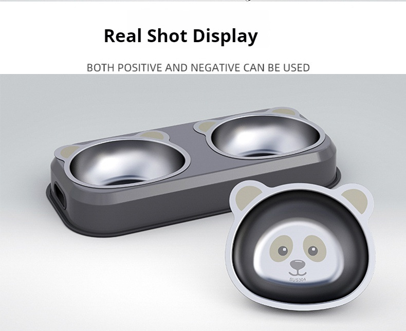 원피스 스테인레스 스틸 애완 동물 더블 그릇 고양이 개 식품 기구 마시는 그릇 조절 수염 피더 도매