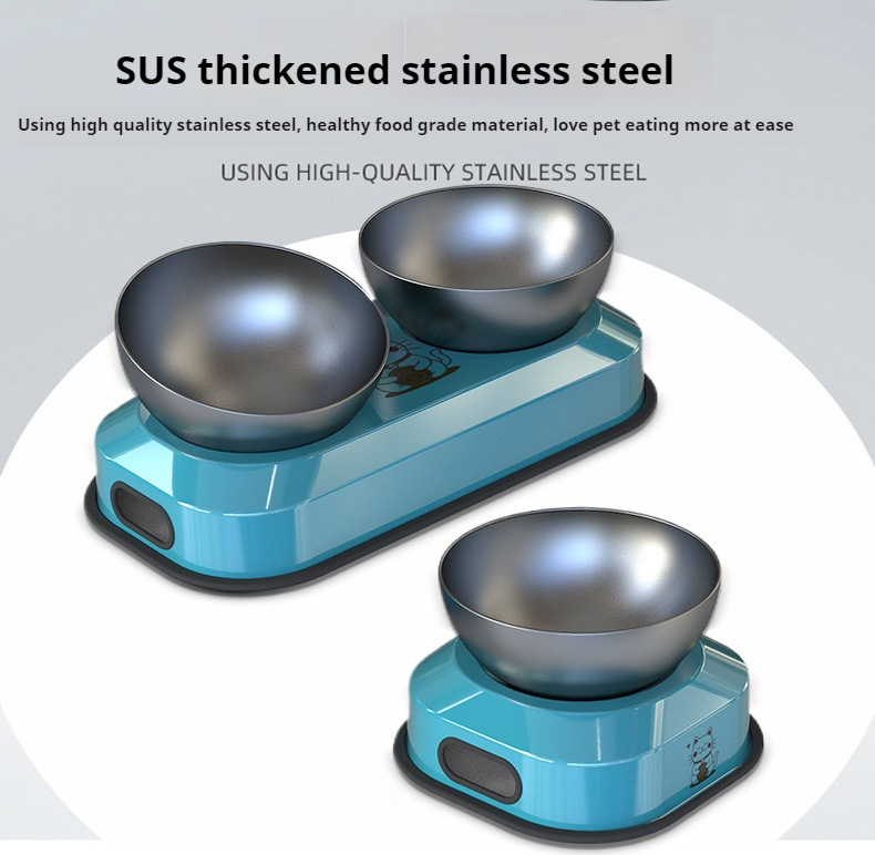 원피스 스테인레스 스틸 애완 동물 더블 그릇 고양이 개 식품 기구 마시는 그릇 조절 수염 피더 도매스토어 가기