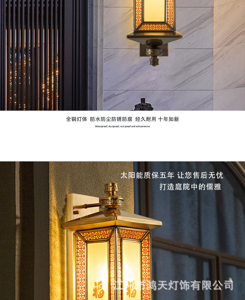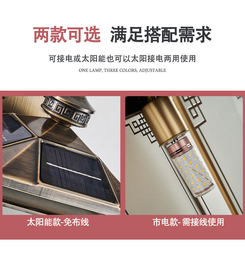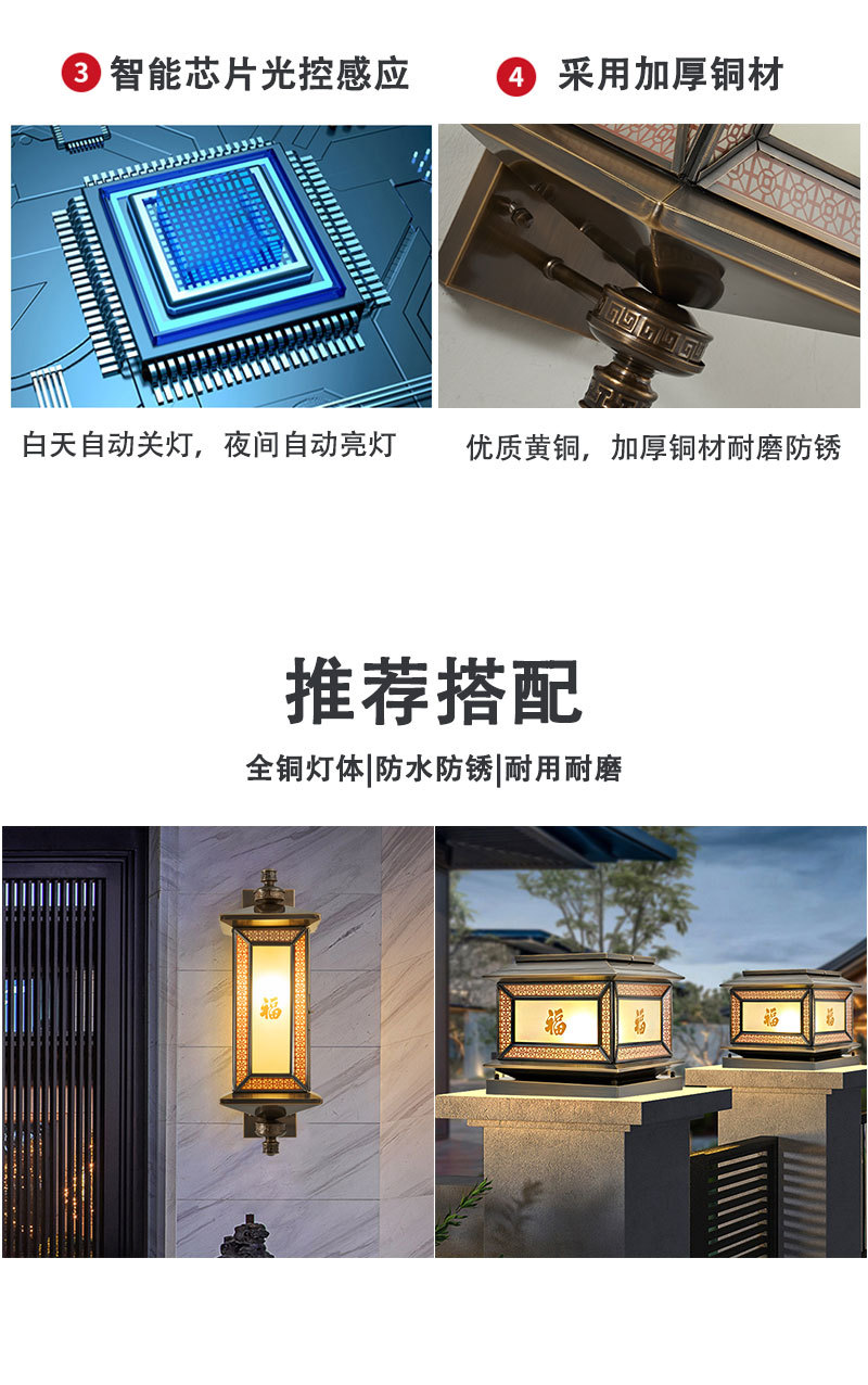 야외 벽 램프 태양 방수 정원 램프 새로운 중국 스타일 빌라 문 기둥 벽 발코니 외부 벽 램프