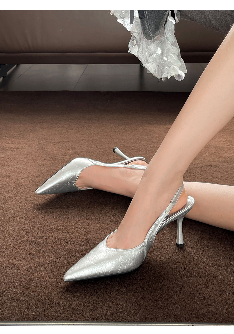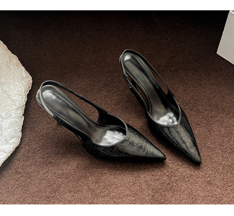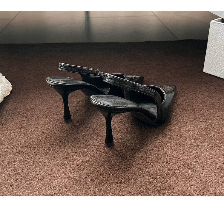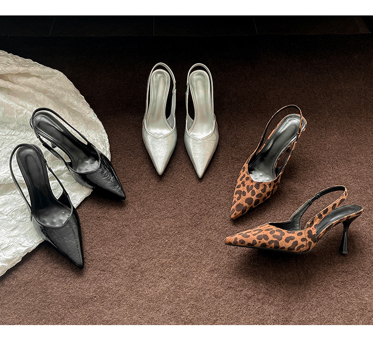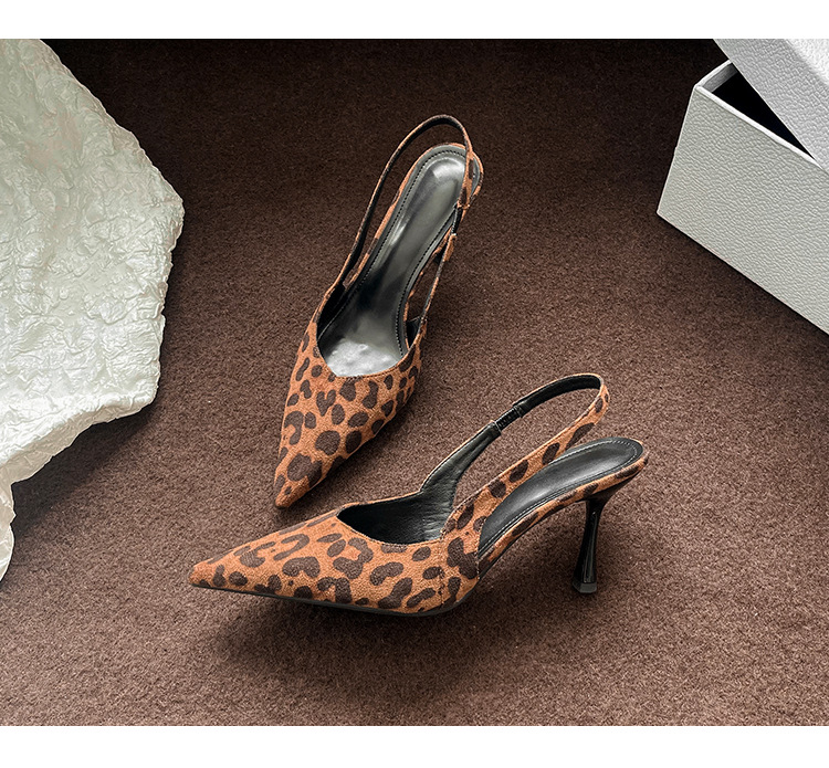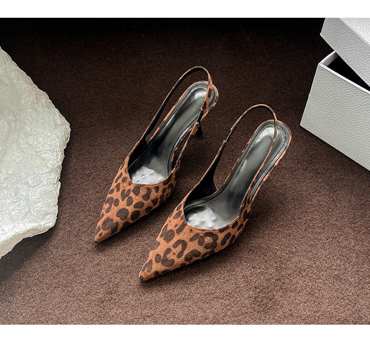 레오파드 무늬 하이힐 여성 2025 인기 틈새 지적 낮은 입 신발 기질 샌들 여름 뒤꿈치 샌들