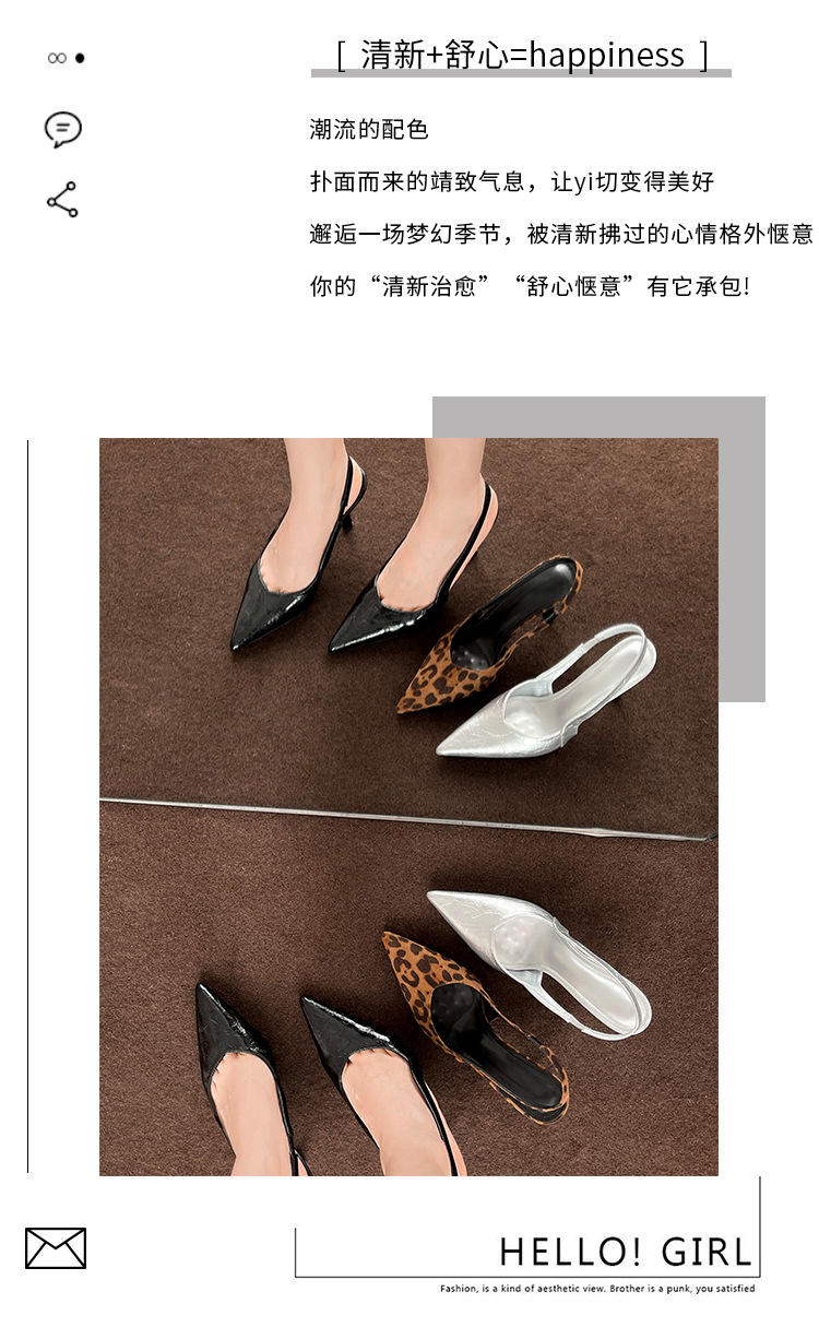레오파드 무늬 하이힐 여성 2025 인기 틈새 지적 낮은 입 신발 기질 샌들 여름 뒤꿈치 샌들스토어 가기