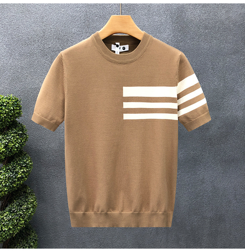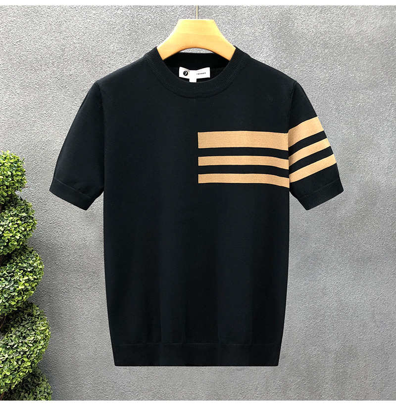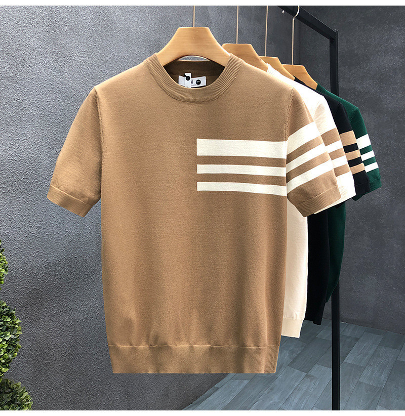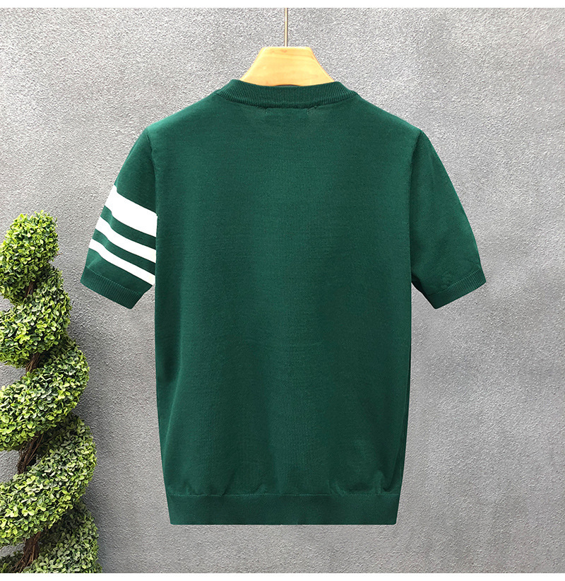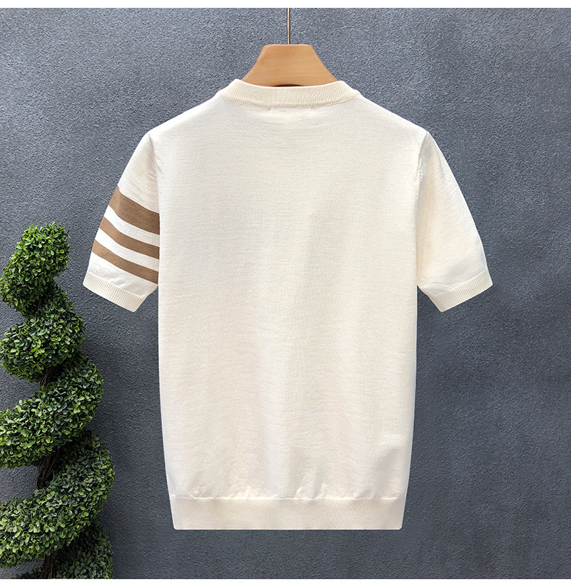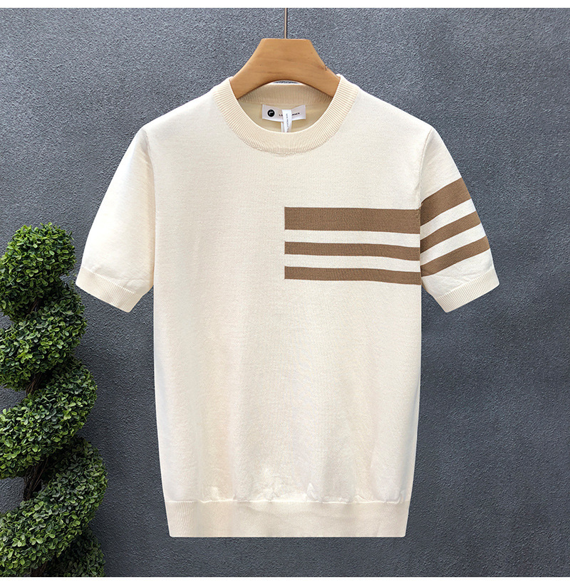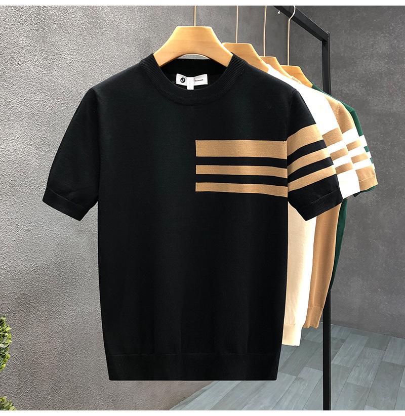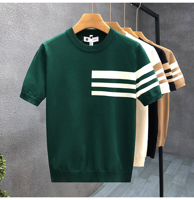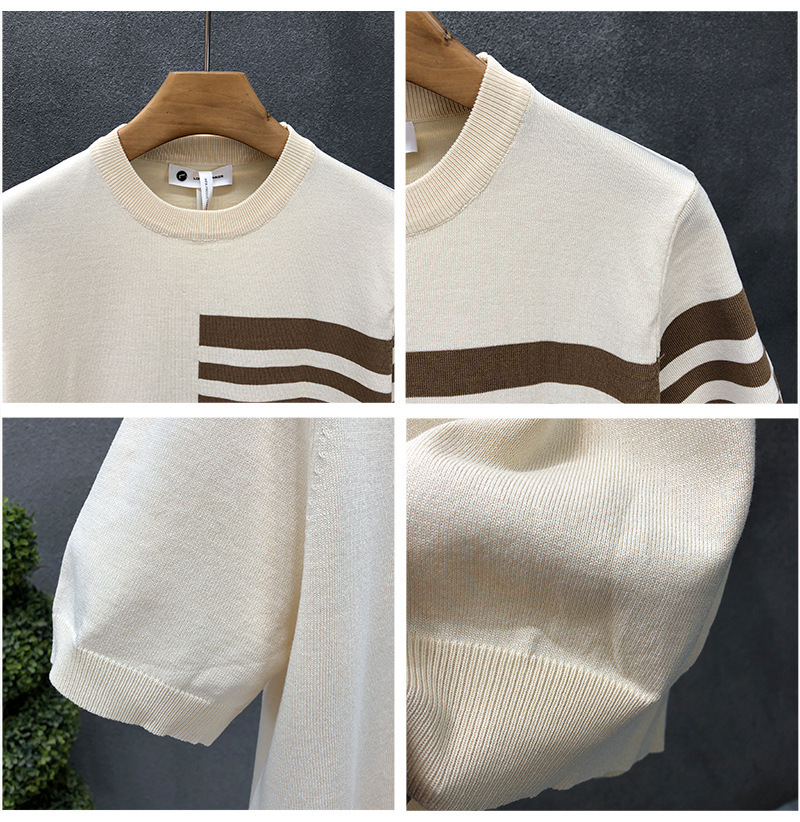심플 올 매치 라운드 넥 반팔 스웨터 남자 이너 니트 2025 봄 뉴 남자 얇은 반팔 티셔츠스토어 가기