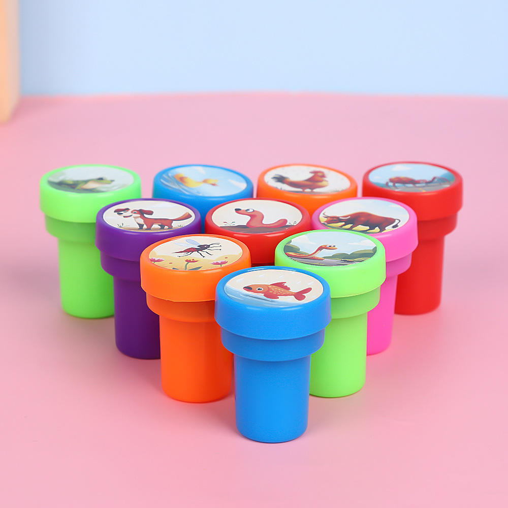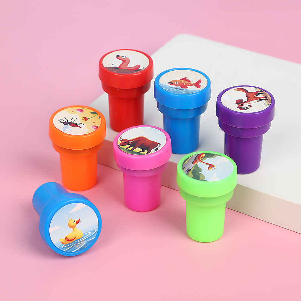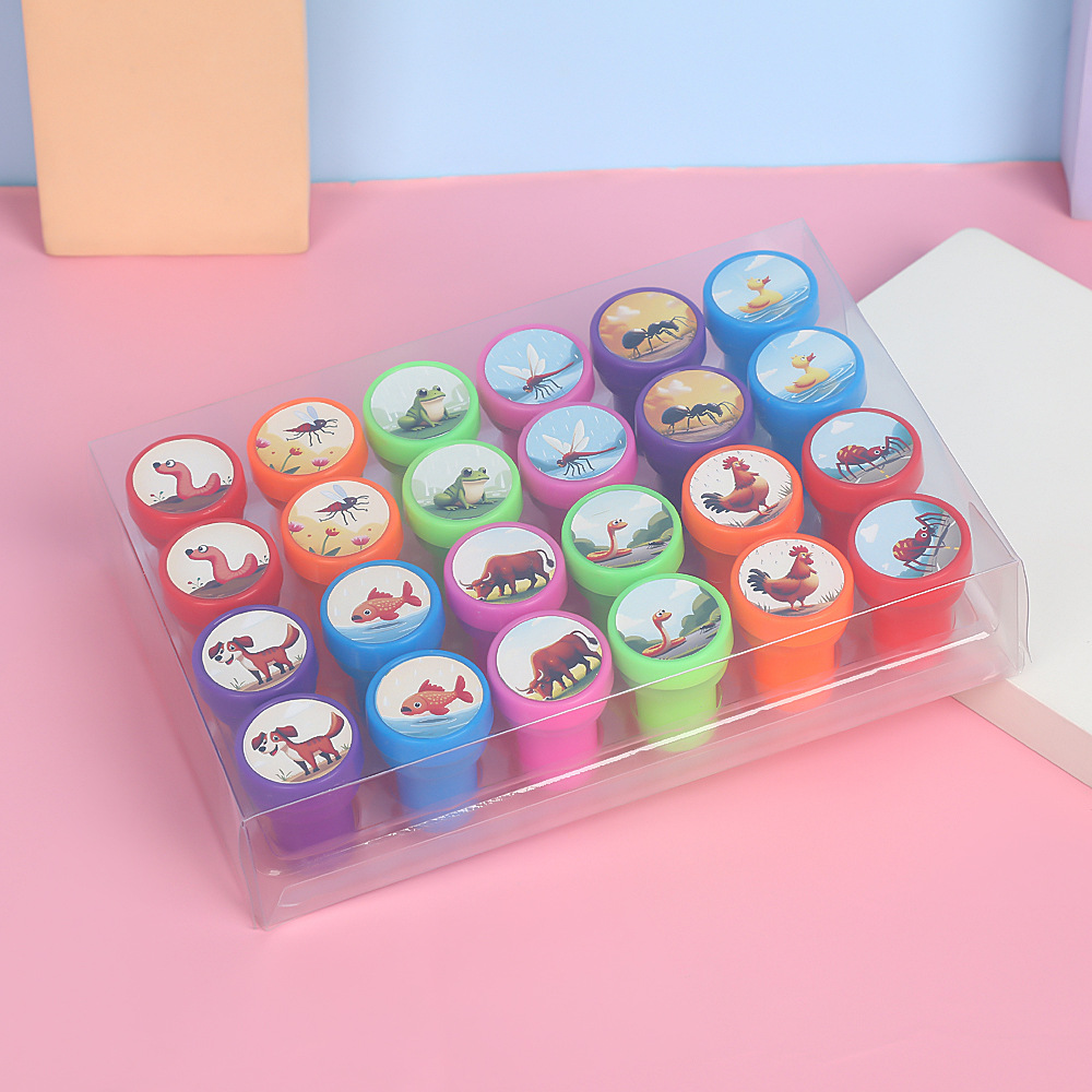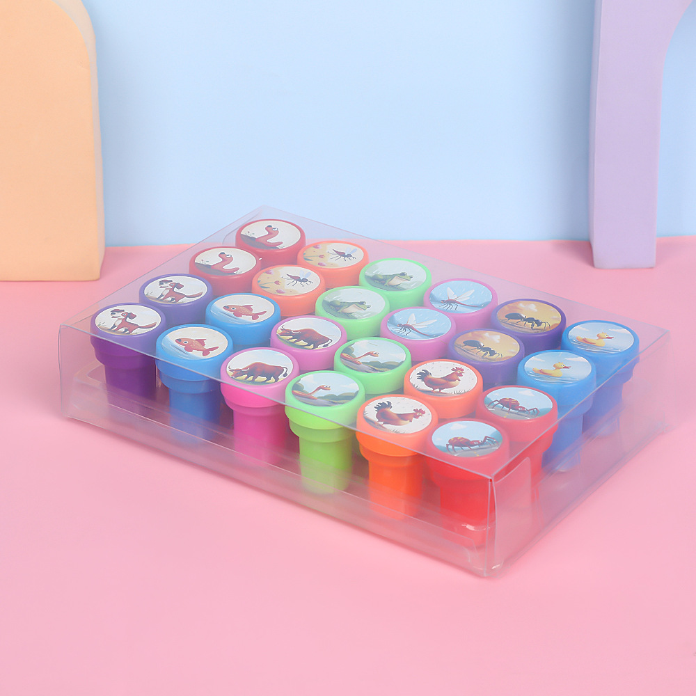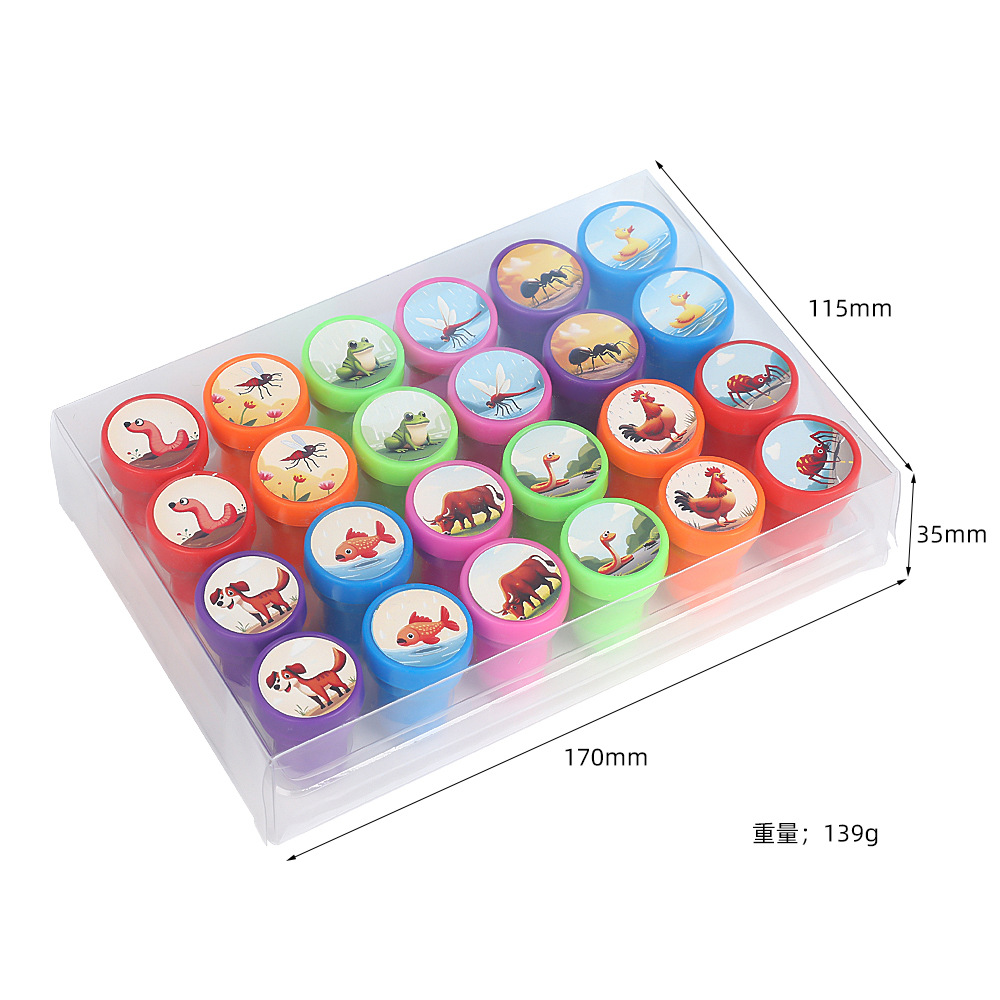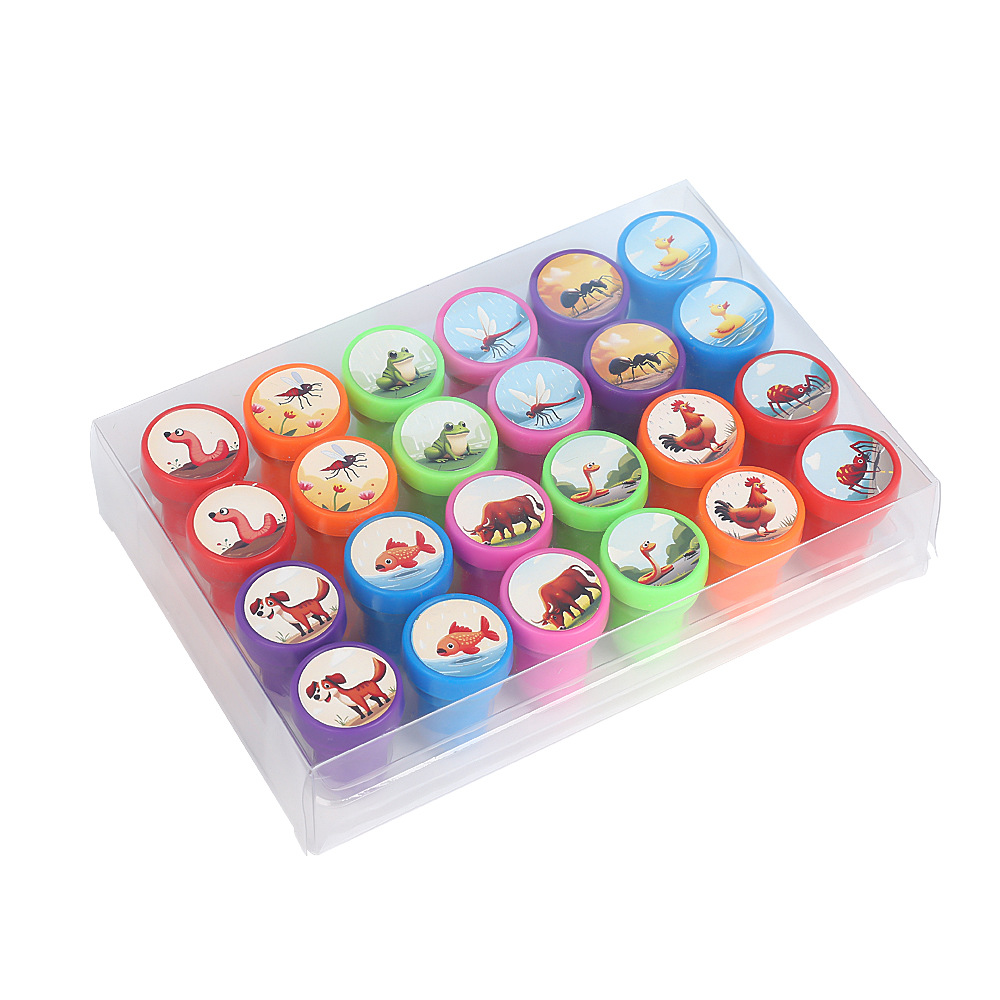 동물무늬 어린이 스탬프, 창의적이고 교육적인 속건성 잉크패드, 도매 24개 원형 스탬프, 여행 기념품