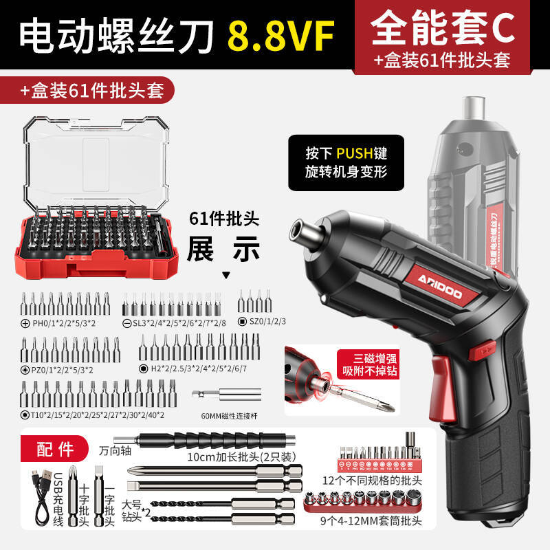 • [흡입력이 뛰어난 자석 3개] 8.8Vf 전동 드라이버 만능 세트 + (박스형 비트 세트 61개)