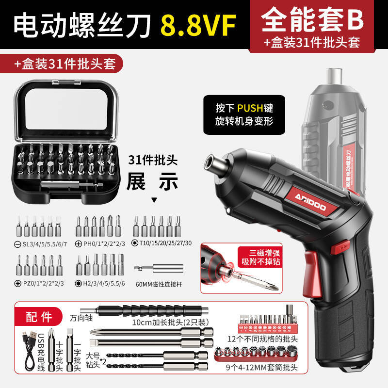 • [흡입력이 높은 자석 3개] 8.8Vf 전동 드라이버 만능 세트 + (박스형 비트 세트 31개)