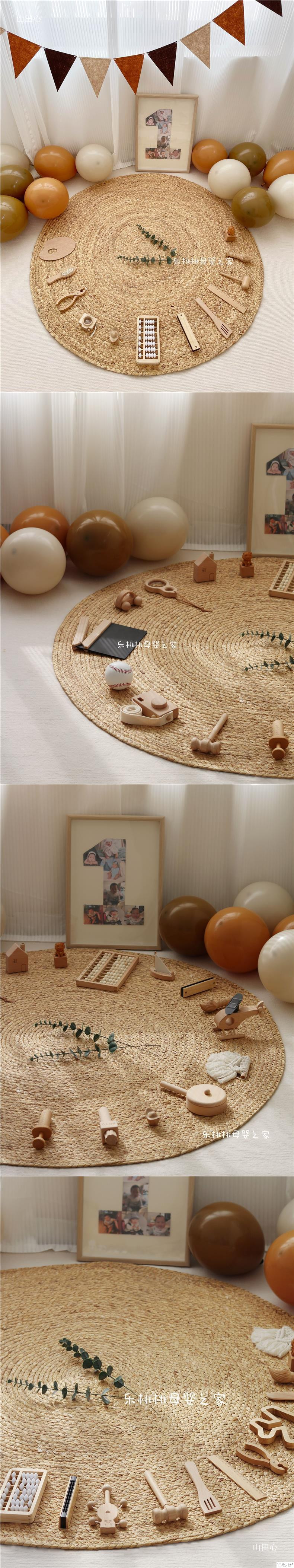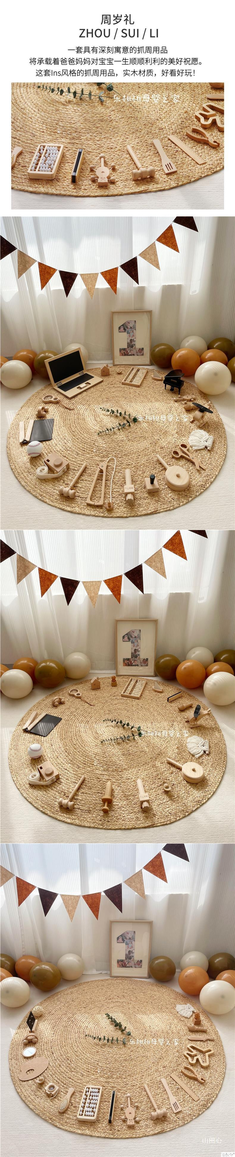 Fengyuan Wooden Mori 스타일의 아기 소년과 소녀 1 세 생일 레이아웃 세트 현대적인 주간 용품 소품 파악스토어 가기