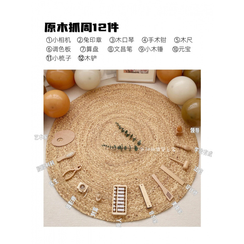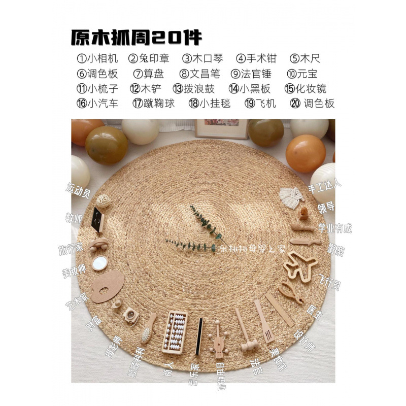Fengyuan Wooden Mori 스타일의 아기 소년과 소녀 1 세 생일 레이아웃 세트 현대적인 주간 용품 소품 파악
