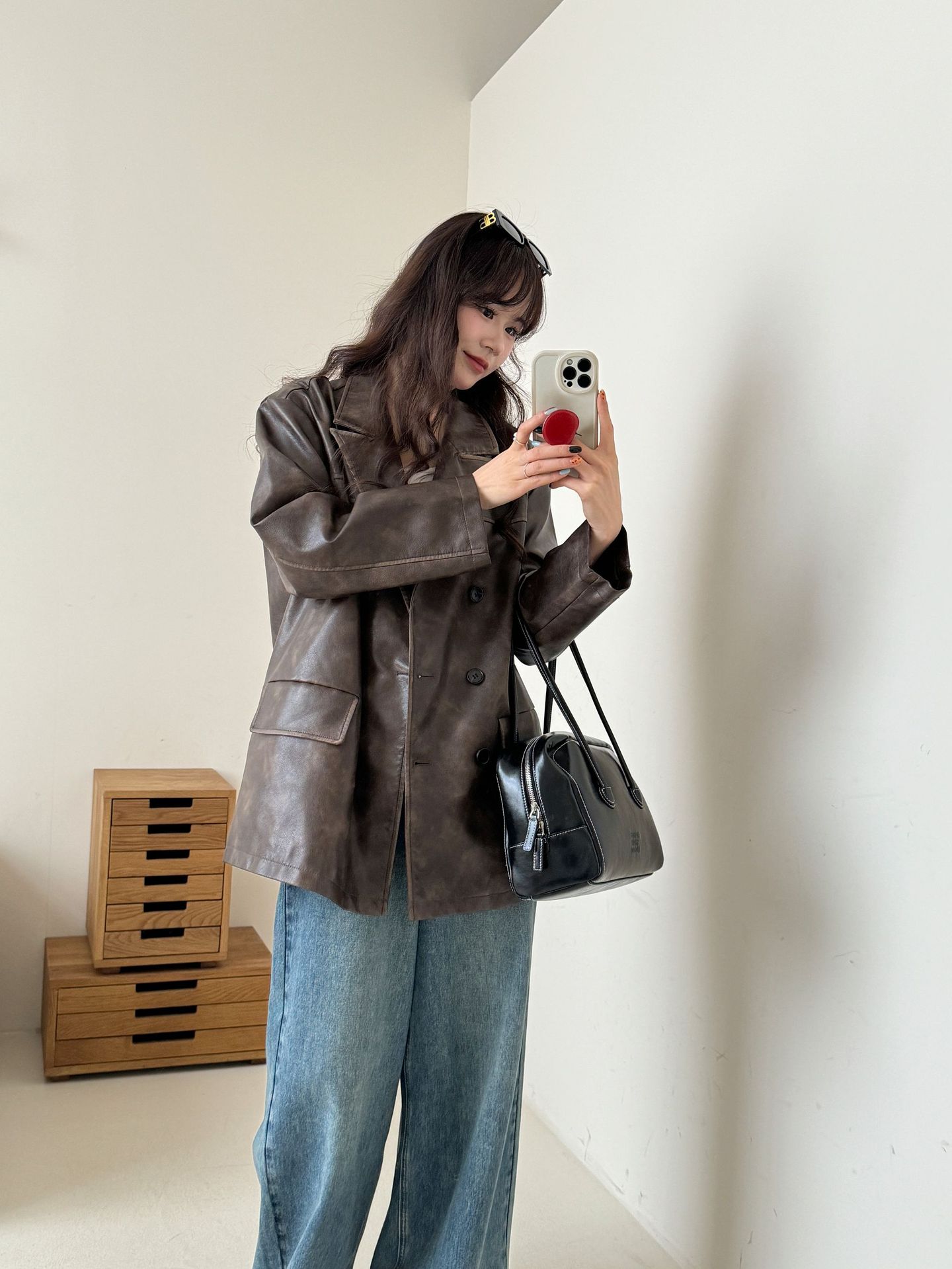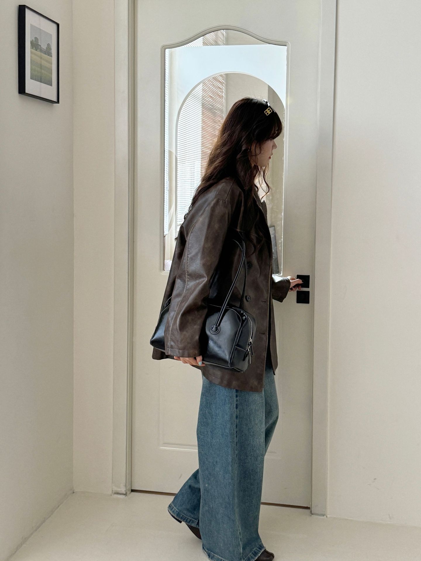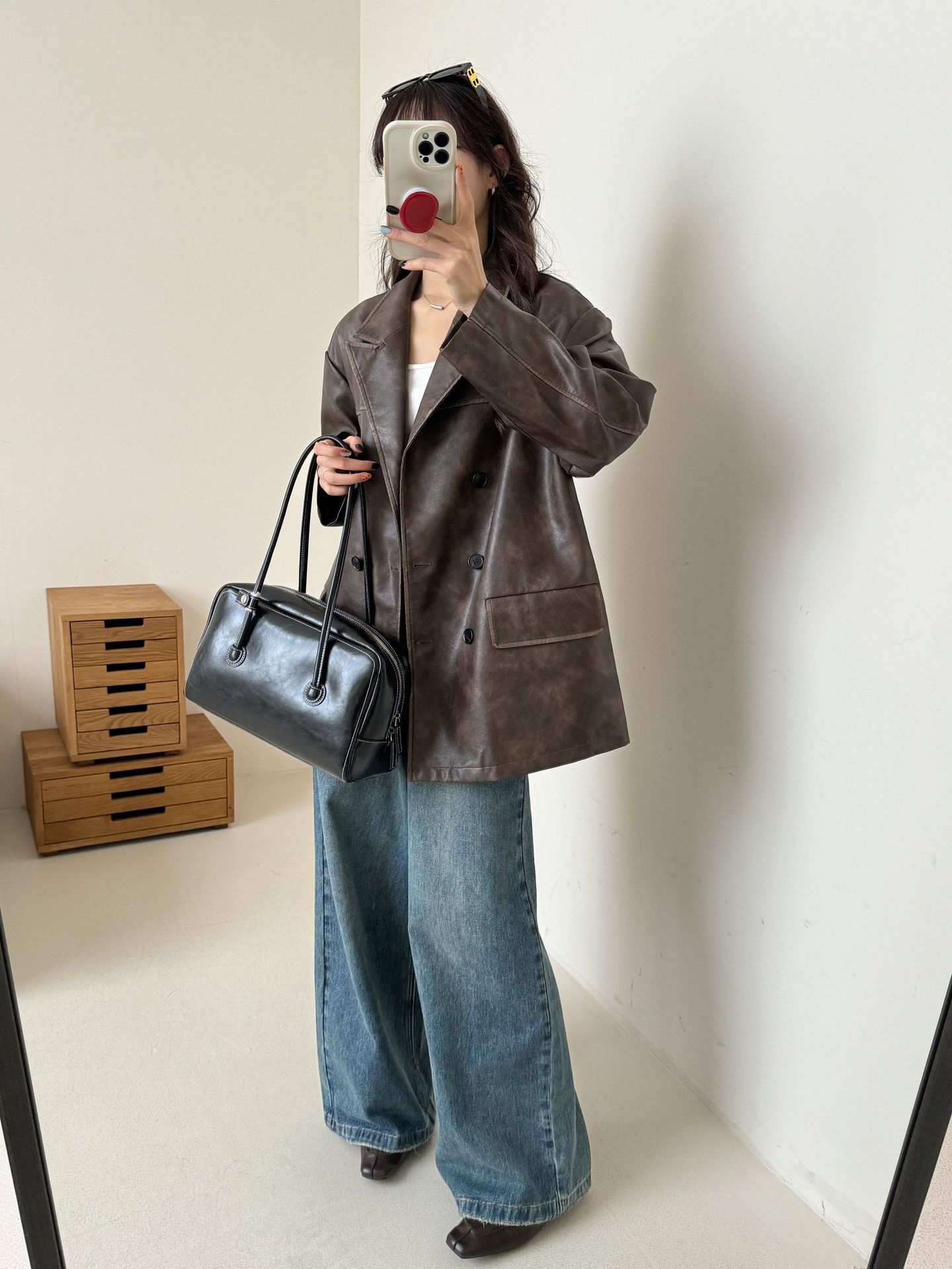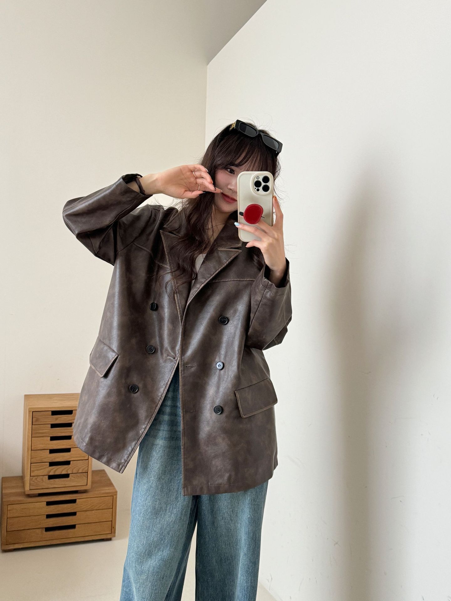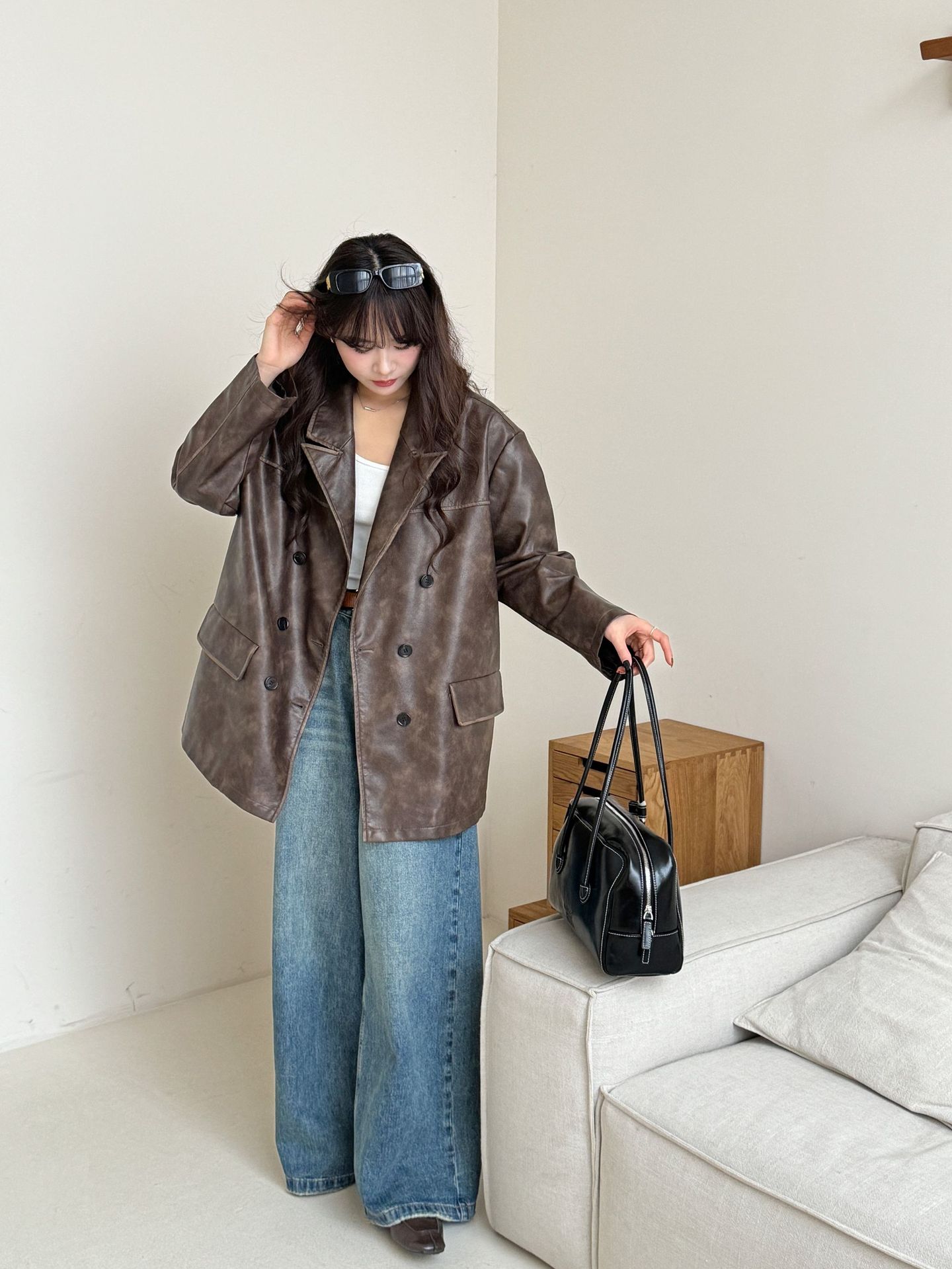 레트로 브라운 아메리칸 스타일 루즈핏 수트 PU 가죽 자켓 여성용 윈드브레이커 문학적 스타일의 짧은 레트로 자켓스토어 가기