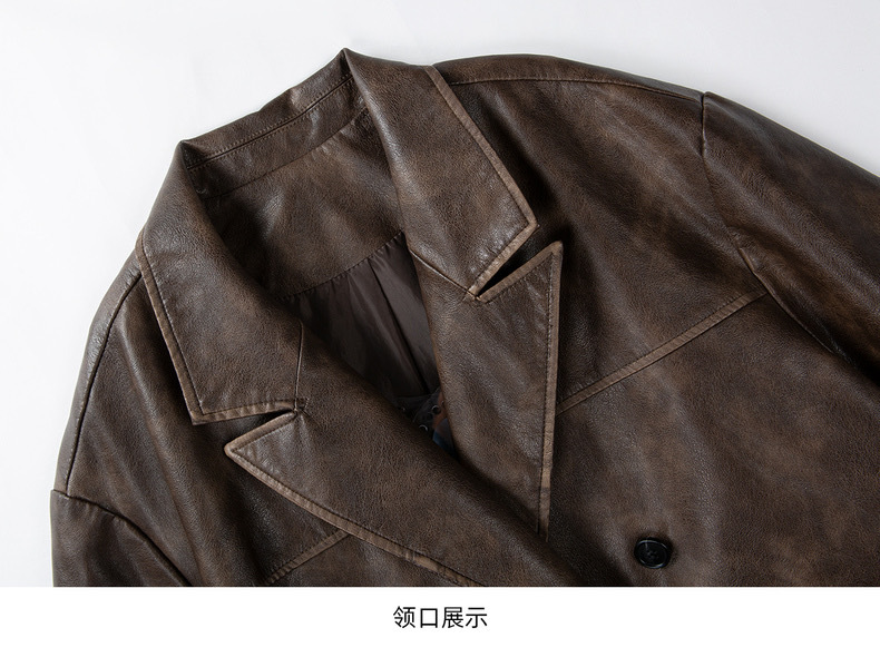 레트로 브라운 아메리칸 스타일 루즈핏 수트 PU 가죽 자켓 여성용 윈드브레이커 문학적 스타일의 짧은 레트로 자켓