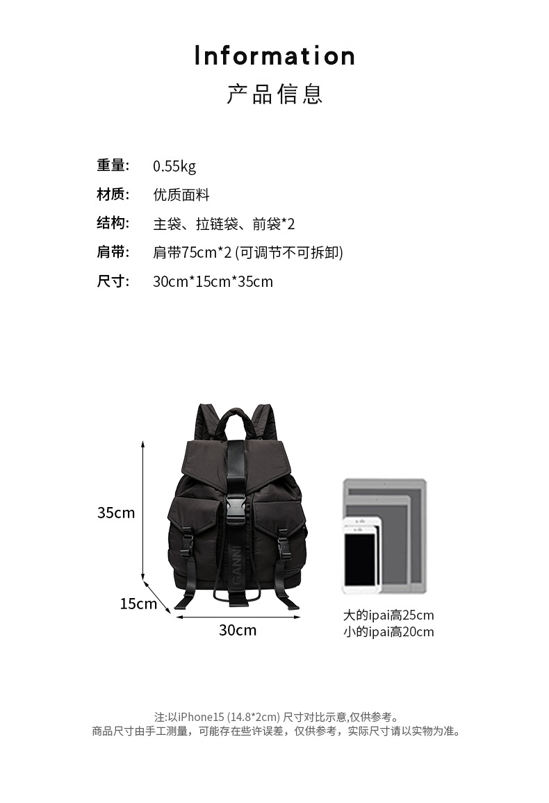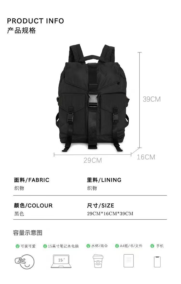 로즈 스토리 블랙 백팩 여성용 신상 대용량 경량 여행 가방 백팩 책가방 W169