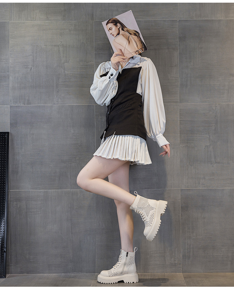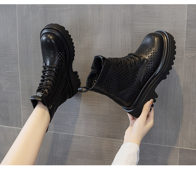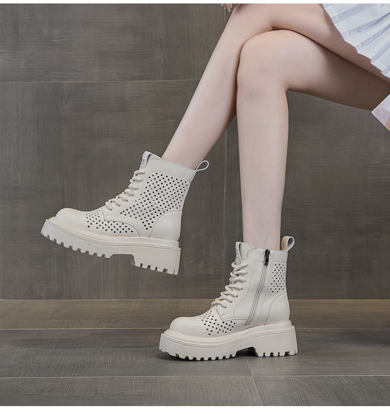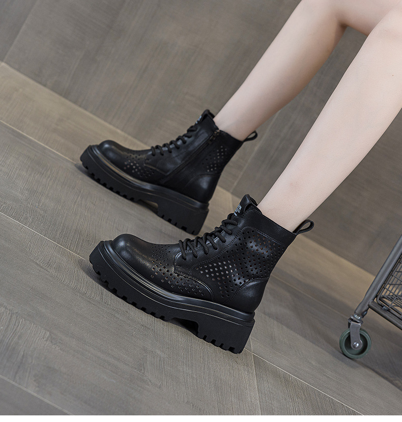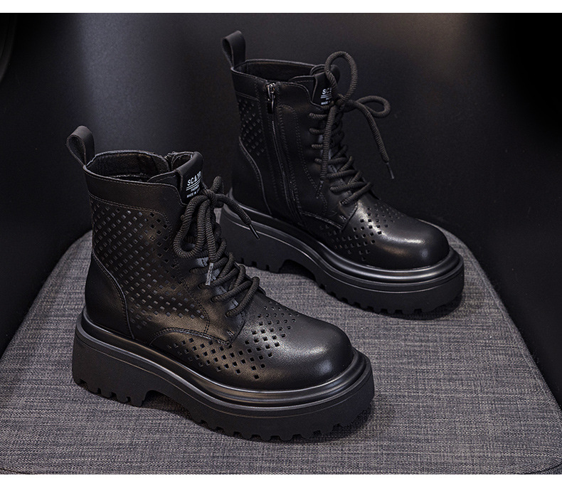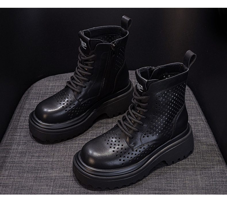 마틴 부츠 여자 2025 여름 가죽 펀치 짧은 툴링 부츠 영국 스타일 캐주얼 패션 올 매치 여성 부츠스토어 가기