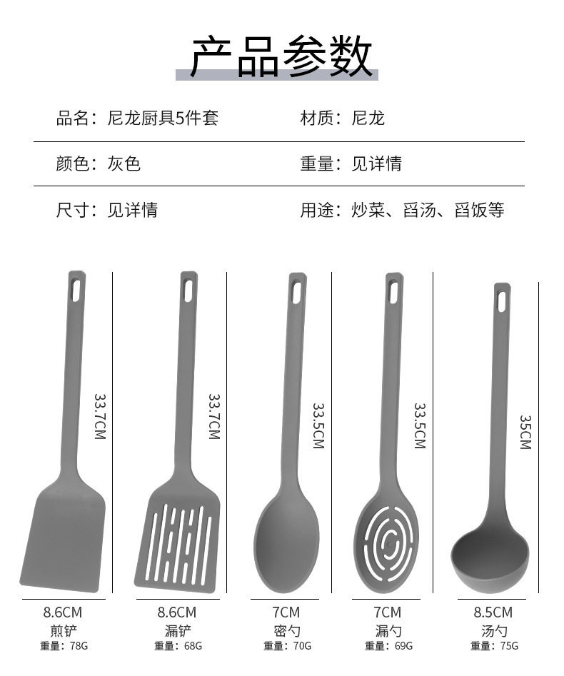 나일론 주방용품 식품 등급 비 스틱 5 조각 주방 요리 볶음 삽 수프 스푼 도구 세트 재고 직접 판매스토어 가기