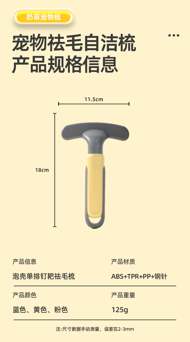 • 단일 행 네일 레이크 제모 빗-노란색 18cm