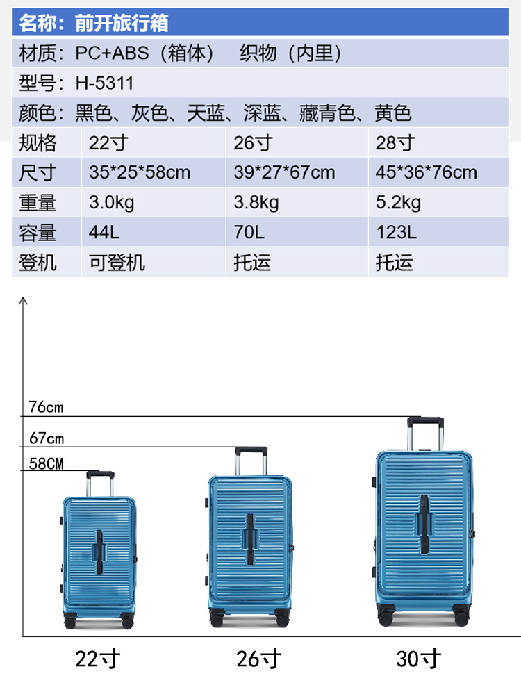 맞춤형 스포츠 버전 전면 개방형 가방 대외 무역 3피스 대용량 트롤리 케이스 다기능 비즈니스 가방