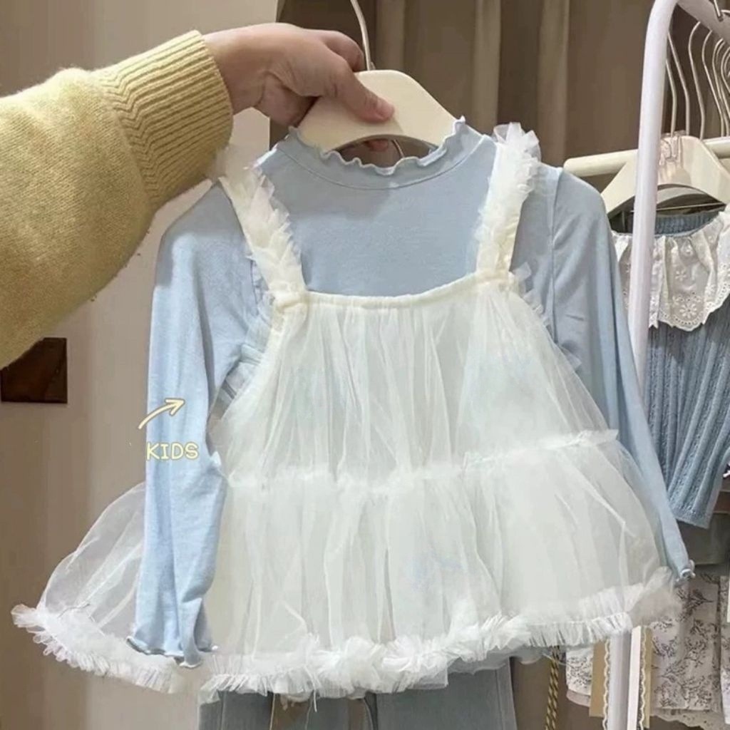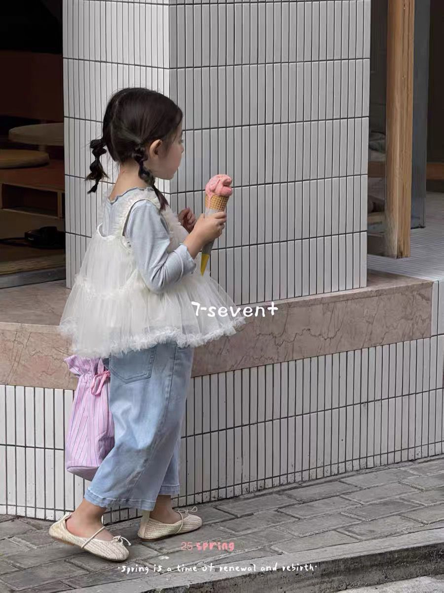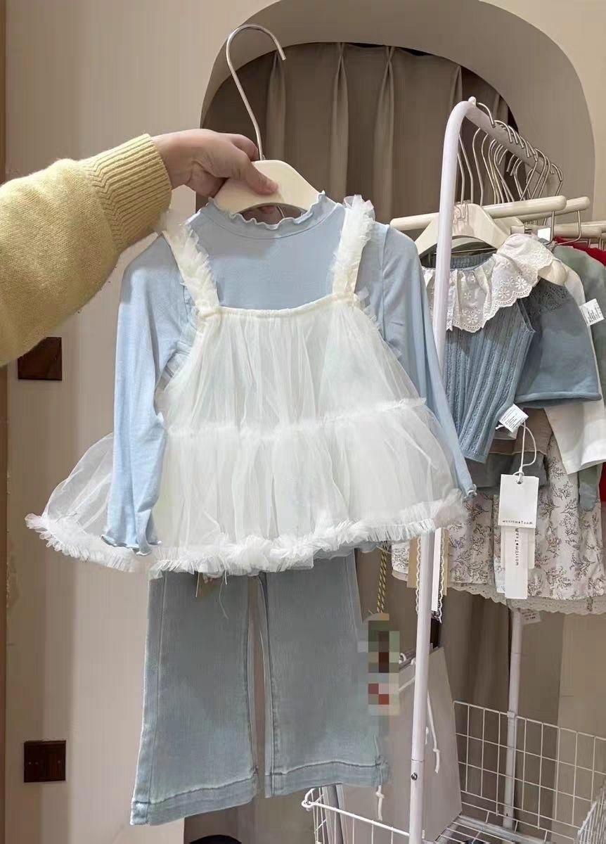 여아복 세트 2025 봄 신상 한국 스타일 여아 메쉬 멜빵 레깅스 청바지 3종 세트 한국 스타일 캐주얼스토어 가기