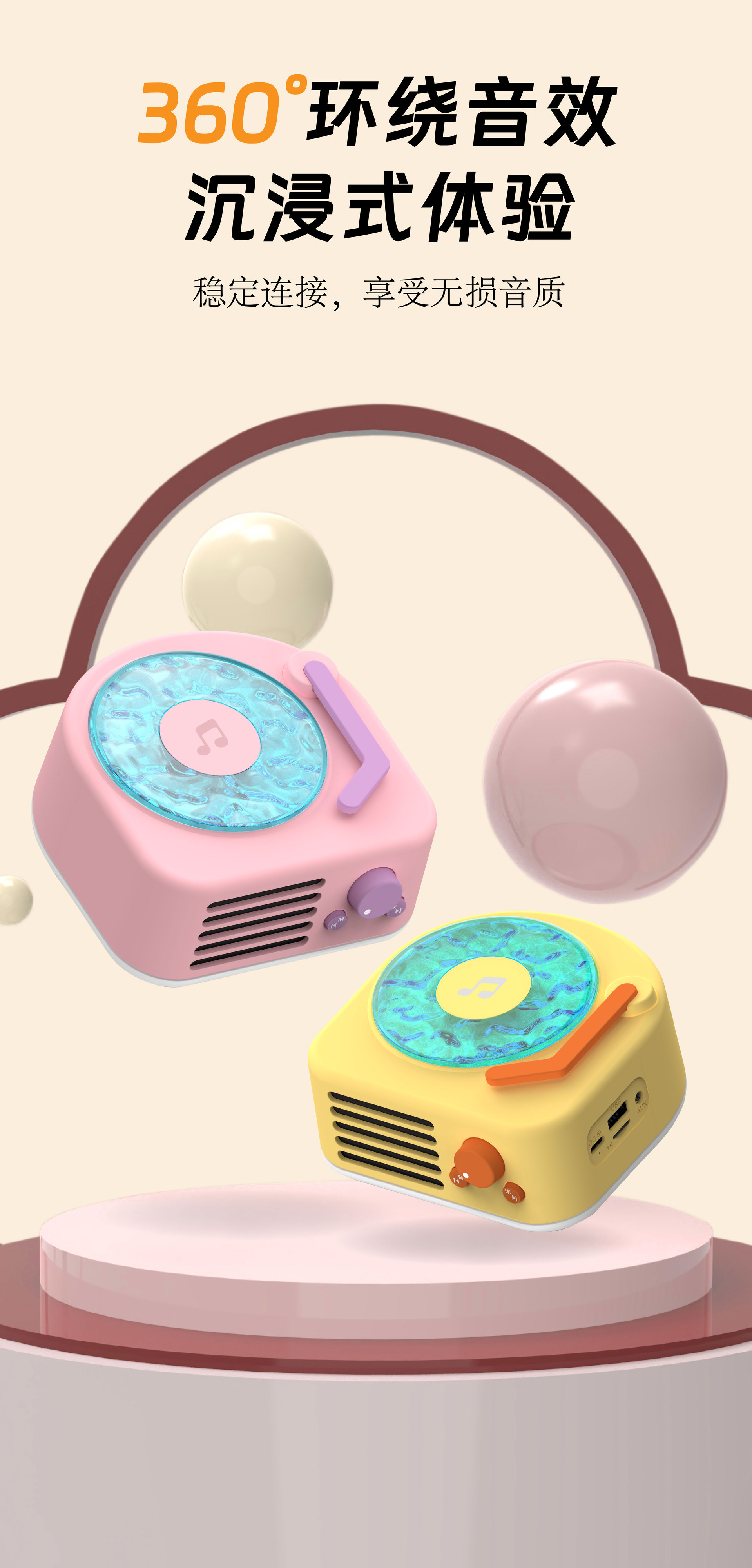 소스 공장 물 리플 비닐 레트로 작은 스테레오 무선 블루투스 스피커 서브 우퍼 레코드 플레이어 생일 선물스토어 가기