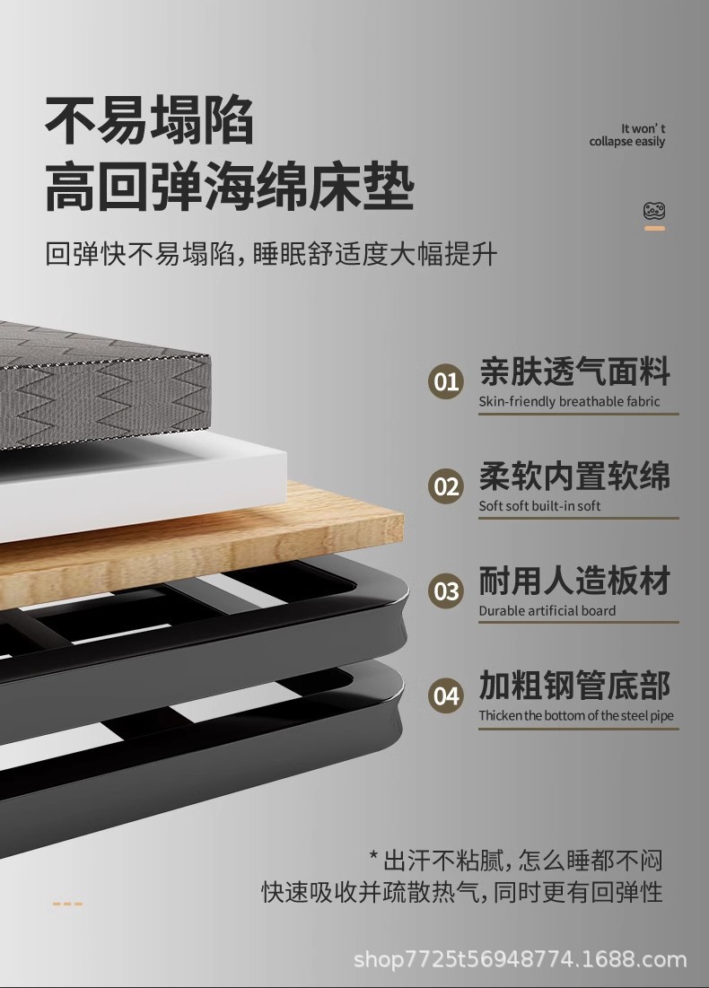• 부드러운 침대 옆 모델 - 철골 두꺼운 판 - 길이 190 폭 70