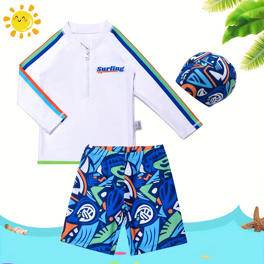 어린이 새 수영복 소년 만화 긴팔 분할 선 스크린 수영 세트 큰 아이 및 아기 소년을위한 빠른 건조 수영 세트스토어 가기