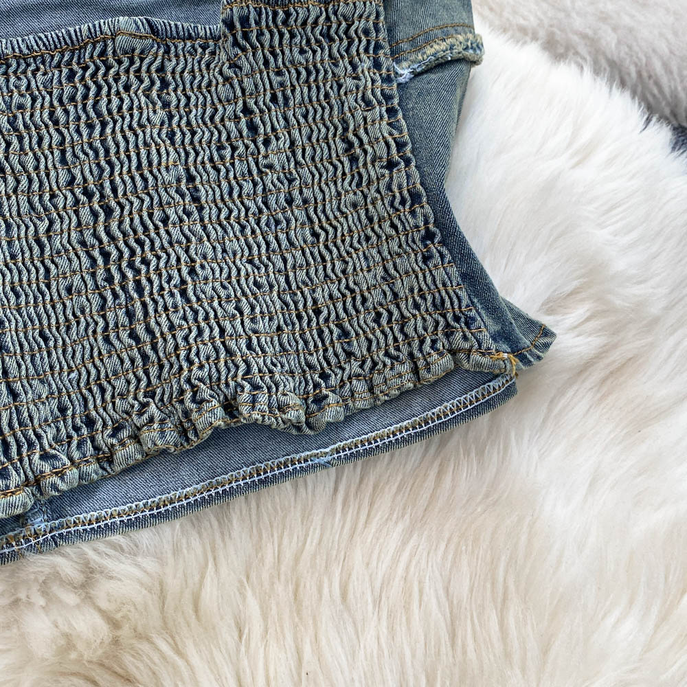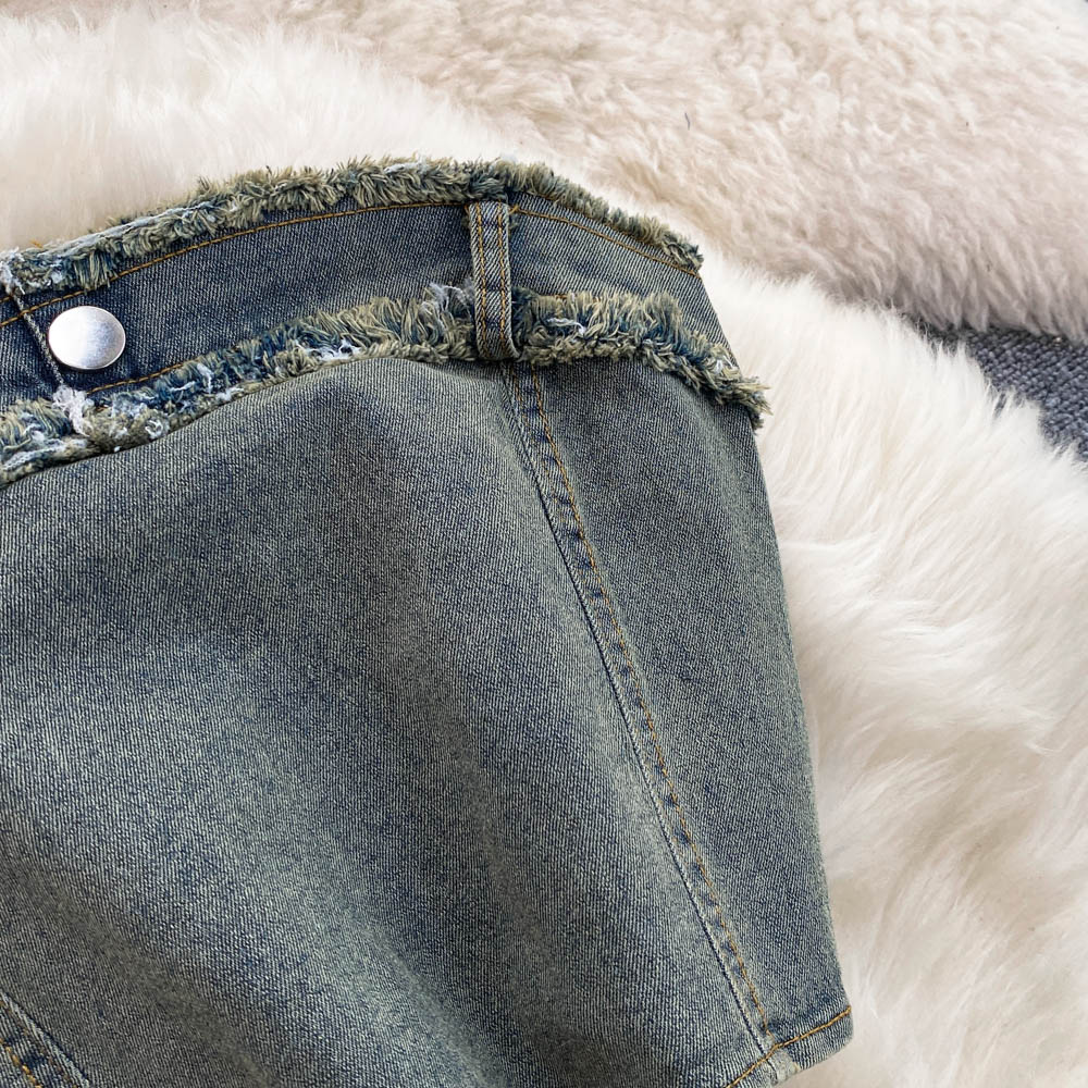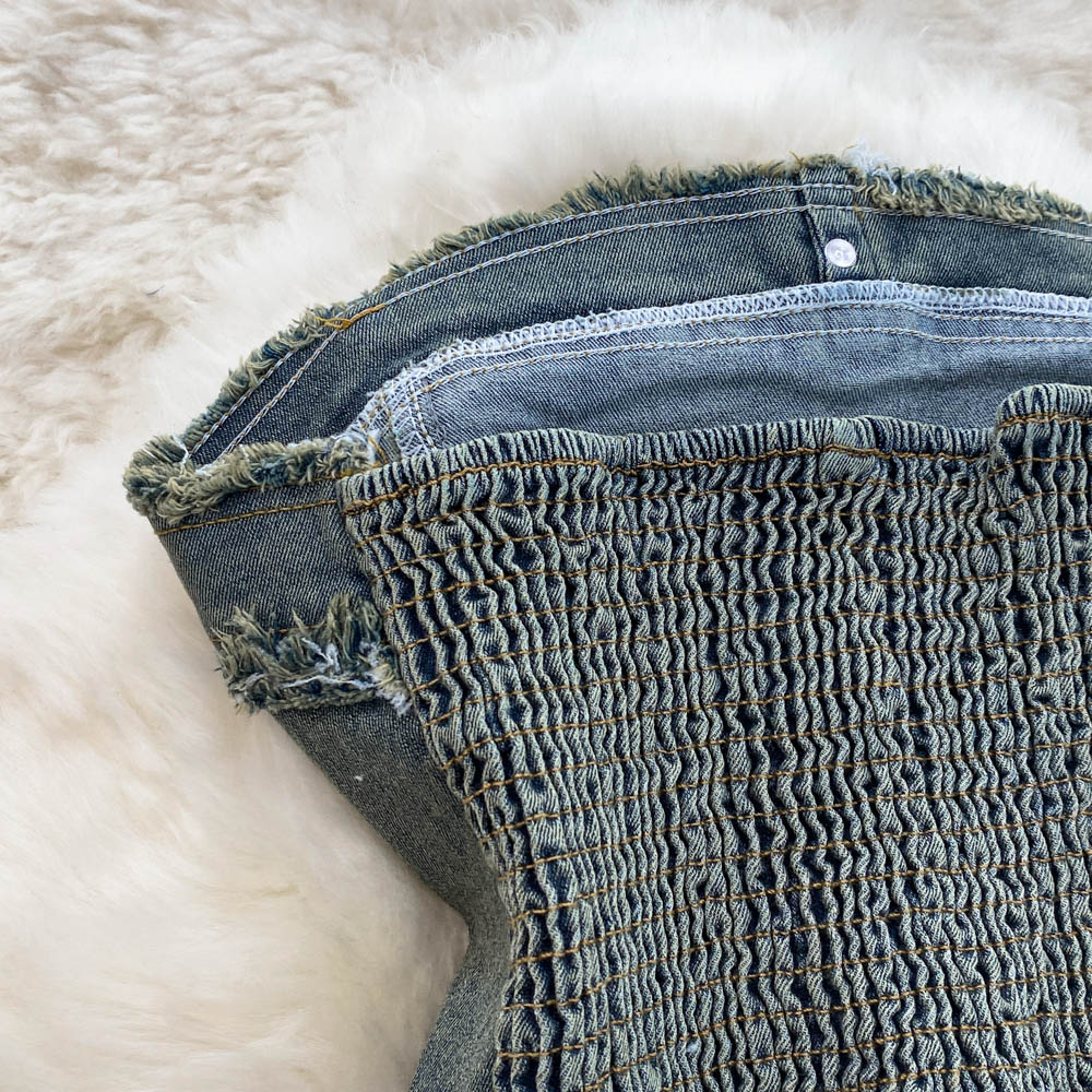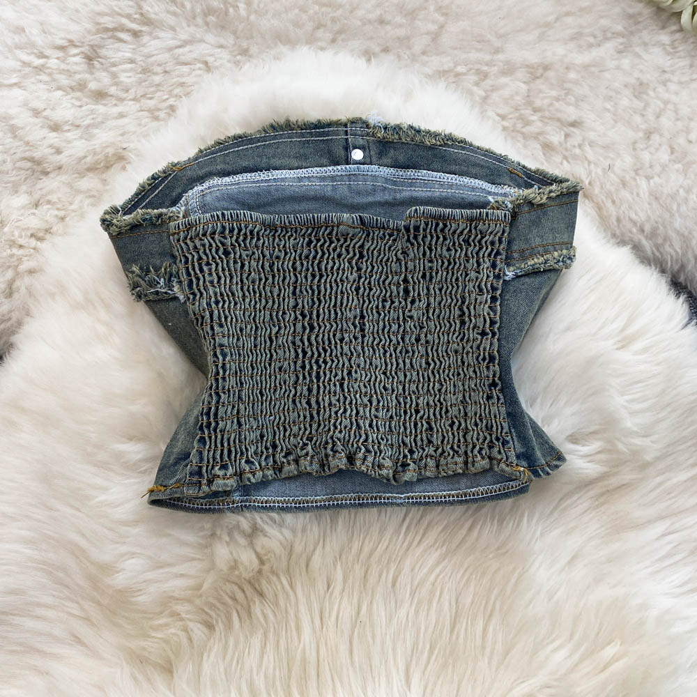 2025 새로운 여성복 녹 데님 튜브 탑 일치하는 인터넷 기념 거울 고등학교 긴 원피스 투피스 세트스토어 가기