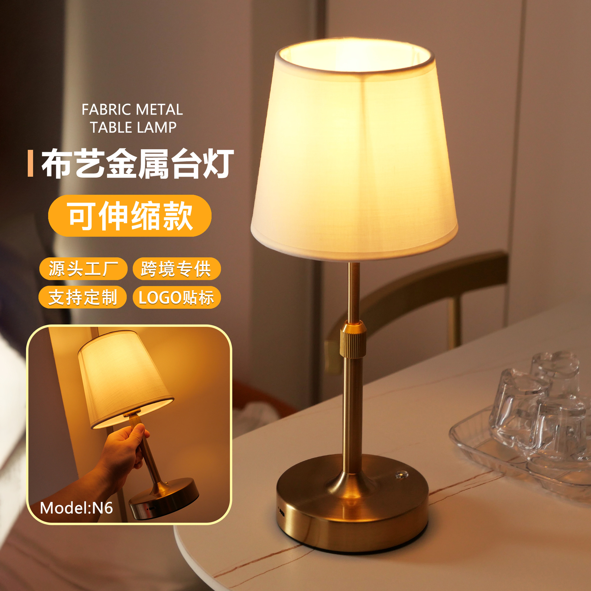 소스 INS 바람 직물 테이블 램프 금속 LED 램프 침실 침대 옆 레스토랑 분위기 테이블 램프 장식 야간 조명 도매스토어 가기