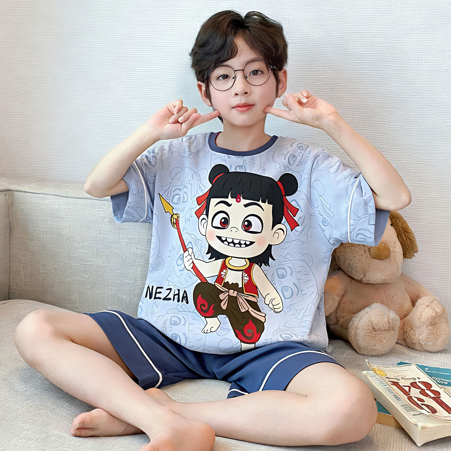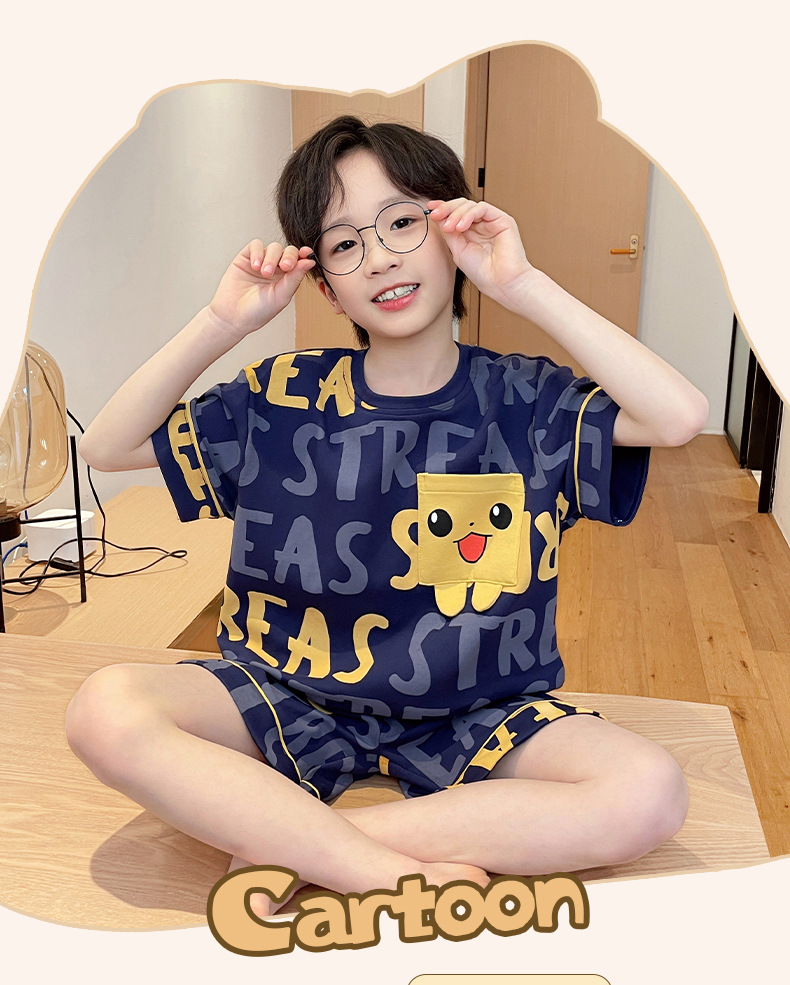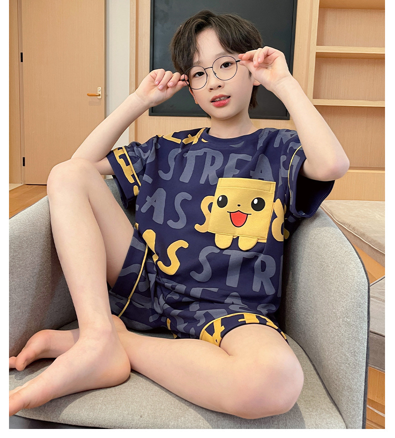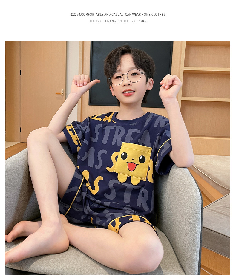 잠옷 소년 청소년 여름 얇은 순면 2026 신상 아동 여름 면 소년복 피카츄스토어 가기