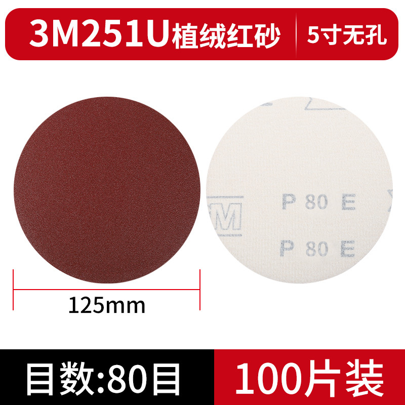 3M251U 건식 연마용 레드 샌드 원형 디스크 5인치 6홀 금속 연마, 목재 연마, 녹 방지, 플로킹 연마 사포