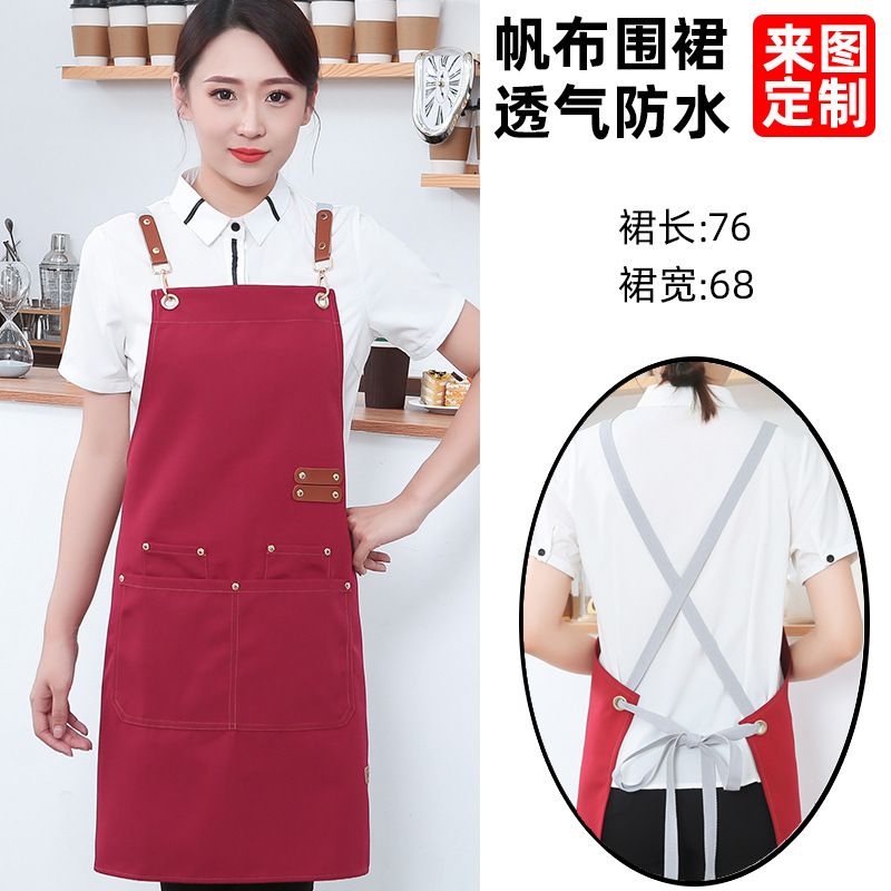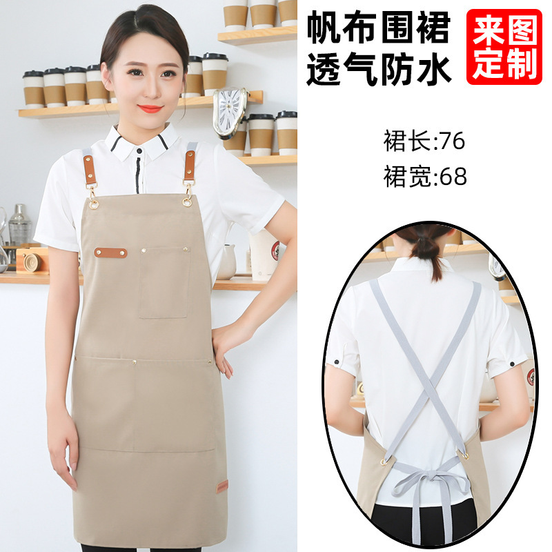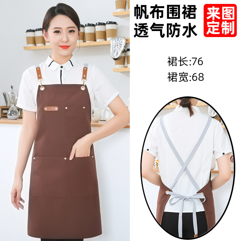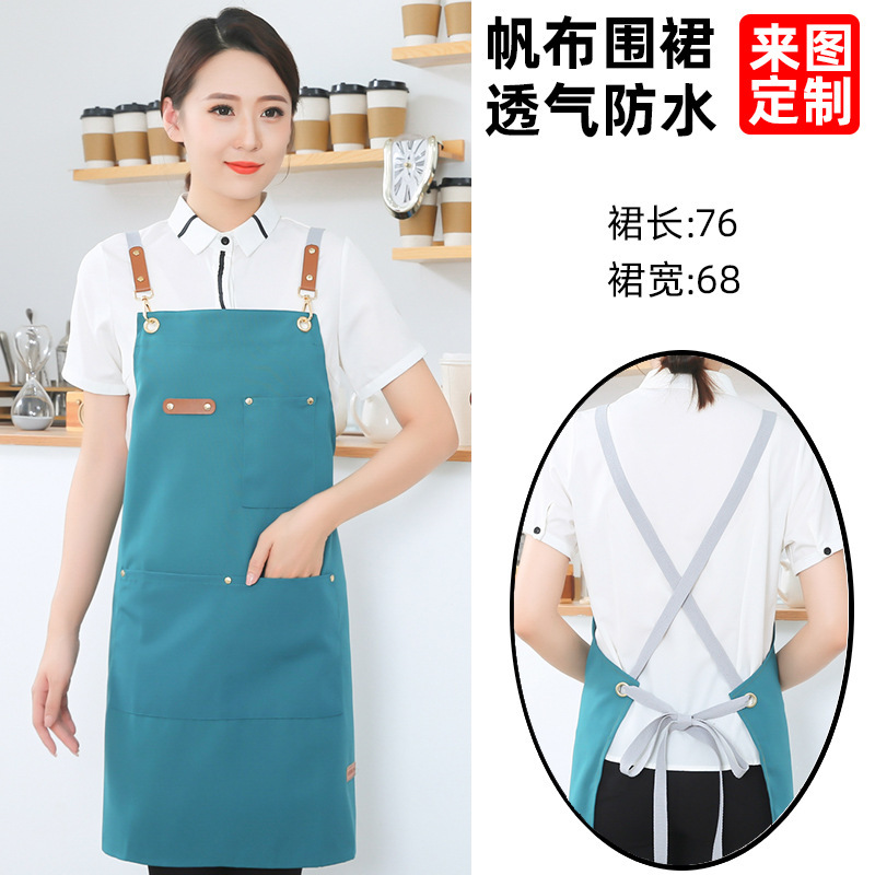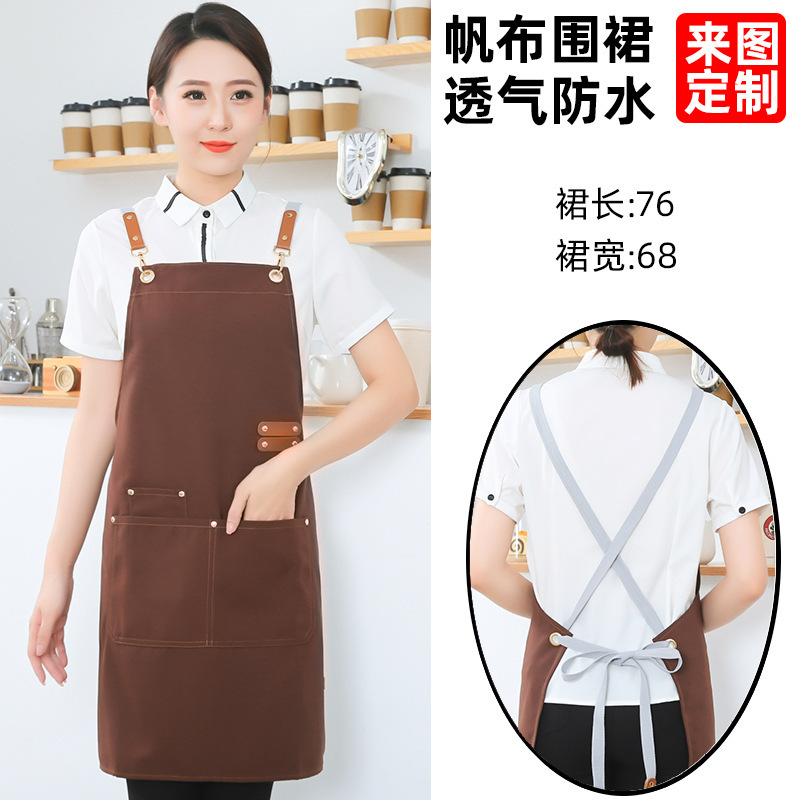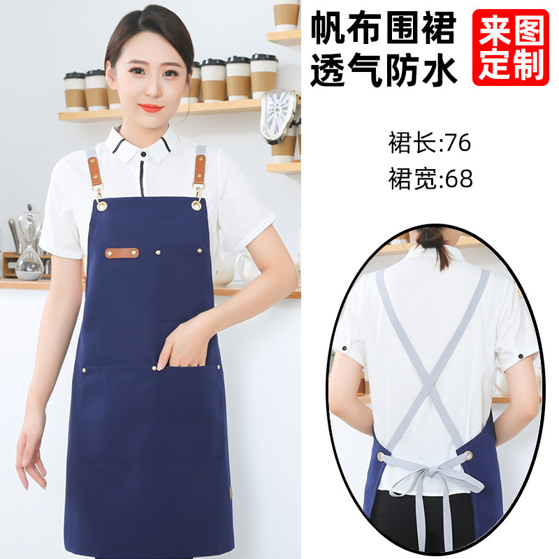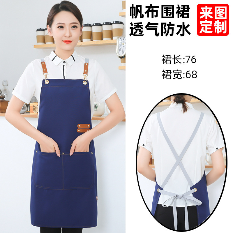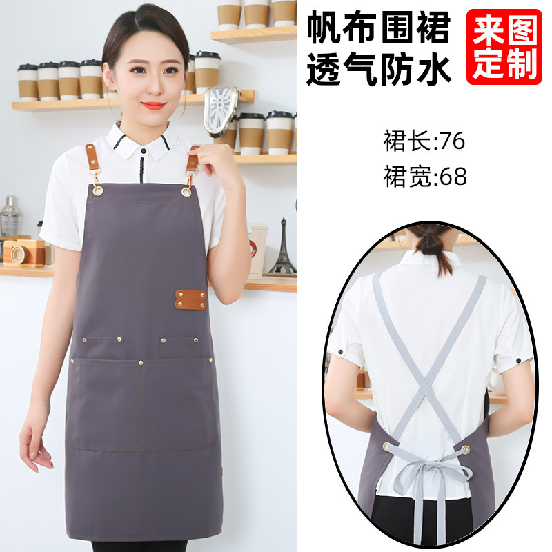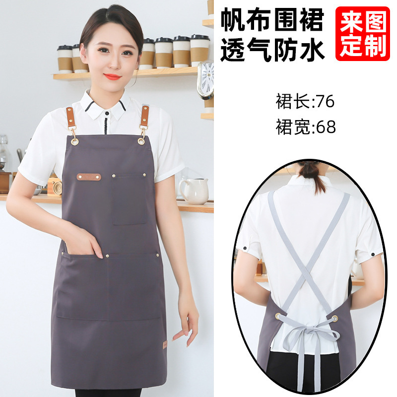 고급 캔버스 앞치마 맞춤 로고 인쇄 케이터링 슈퍼마켓 커피 우유 차 가게 여성 방수 바지 남성스토어 가기