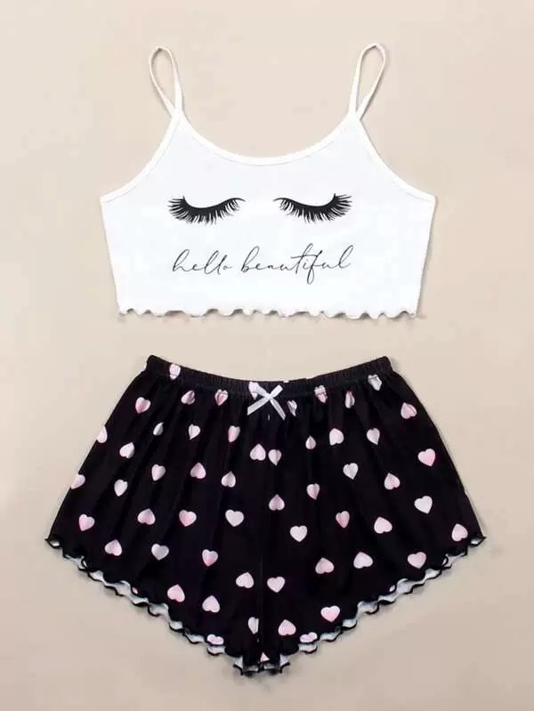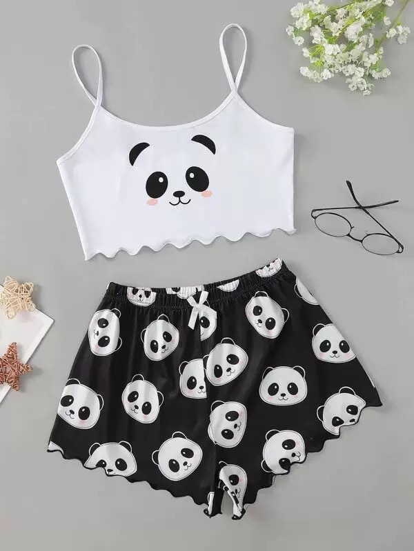 2025 새로운 국경 다중 인쇄 우유 실크 크라운 캐주얼 홈 의류 반바지 슬링 여성 투피스 세트스토어 가기