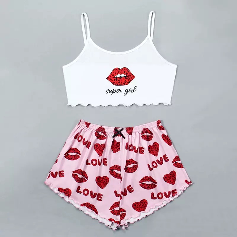 2025 새로운 국경 다중 인쇄 우유 실크 크라운 캐주얼 홈 의류 반바지 슬링 여성 투피스 세트