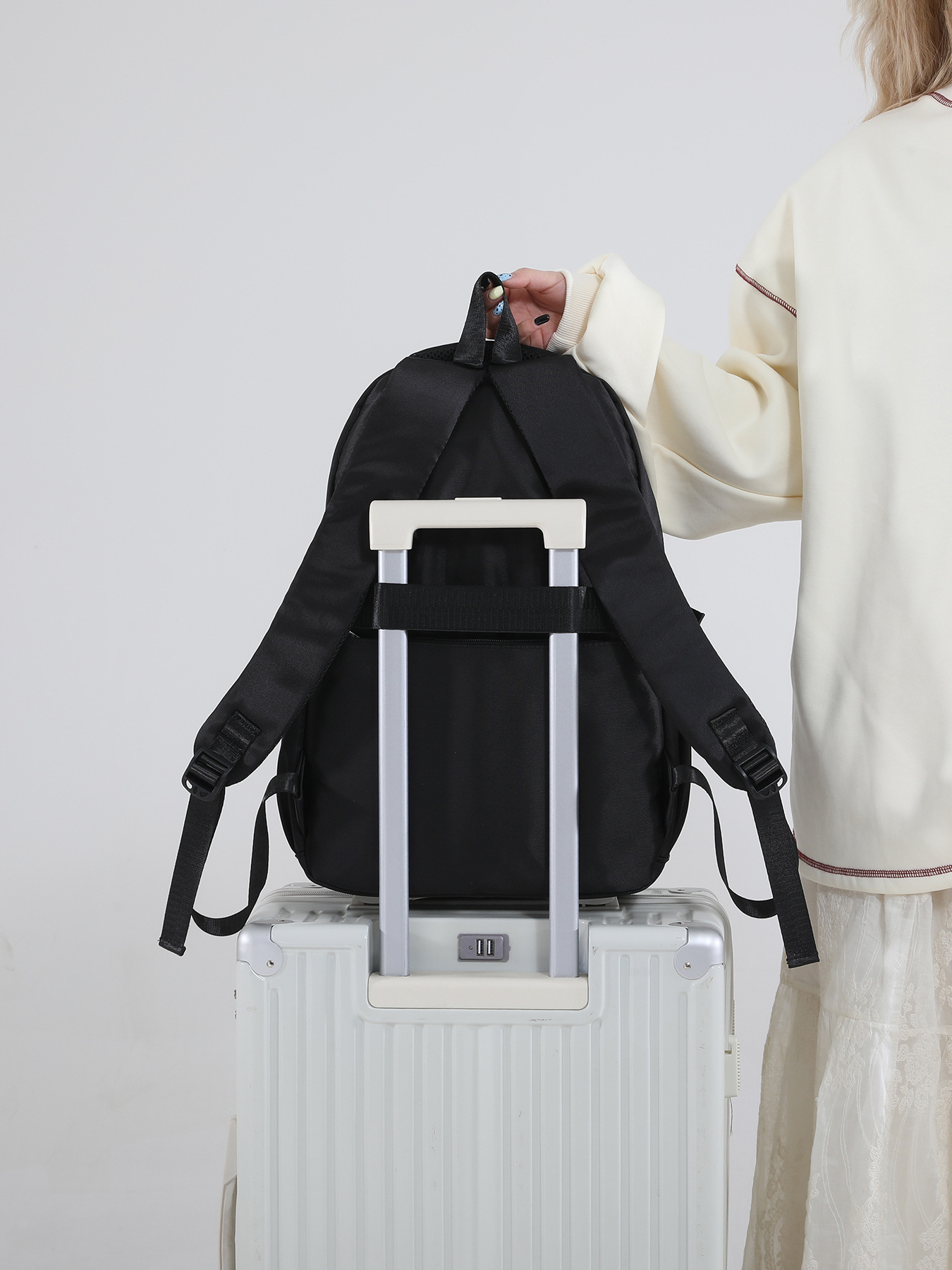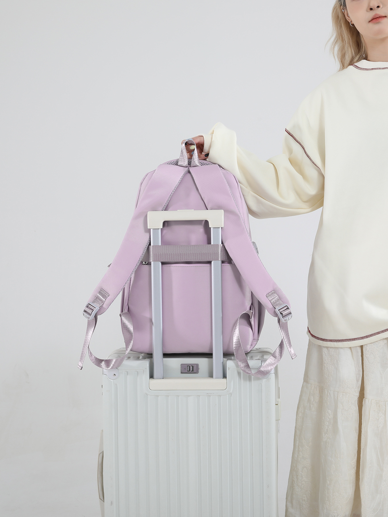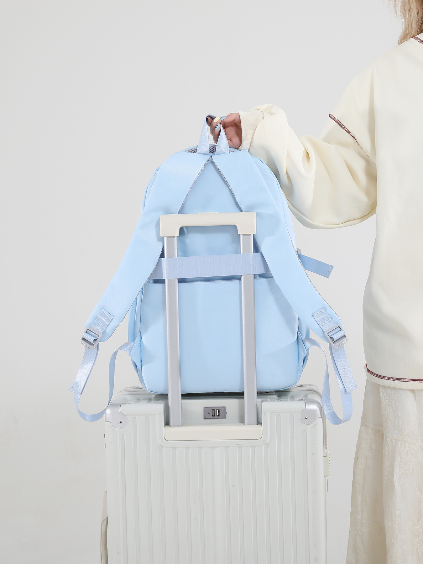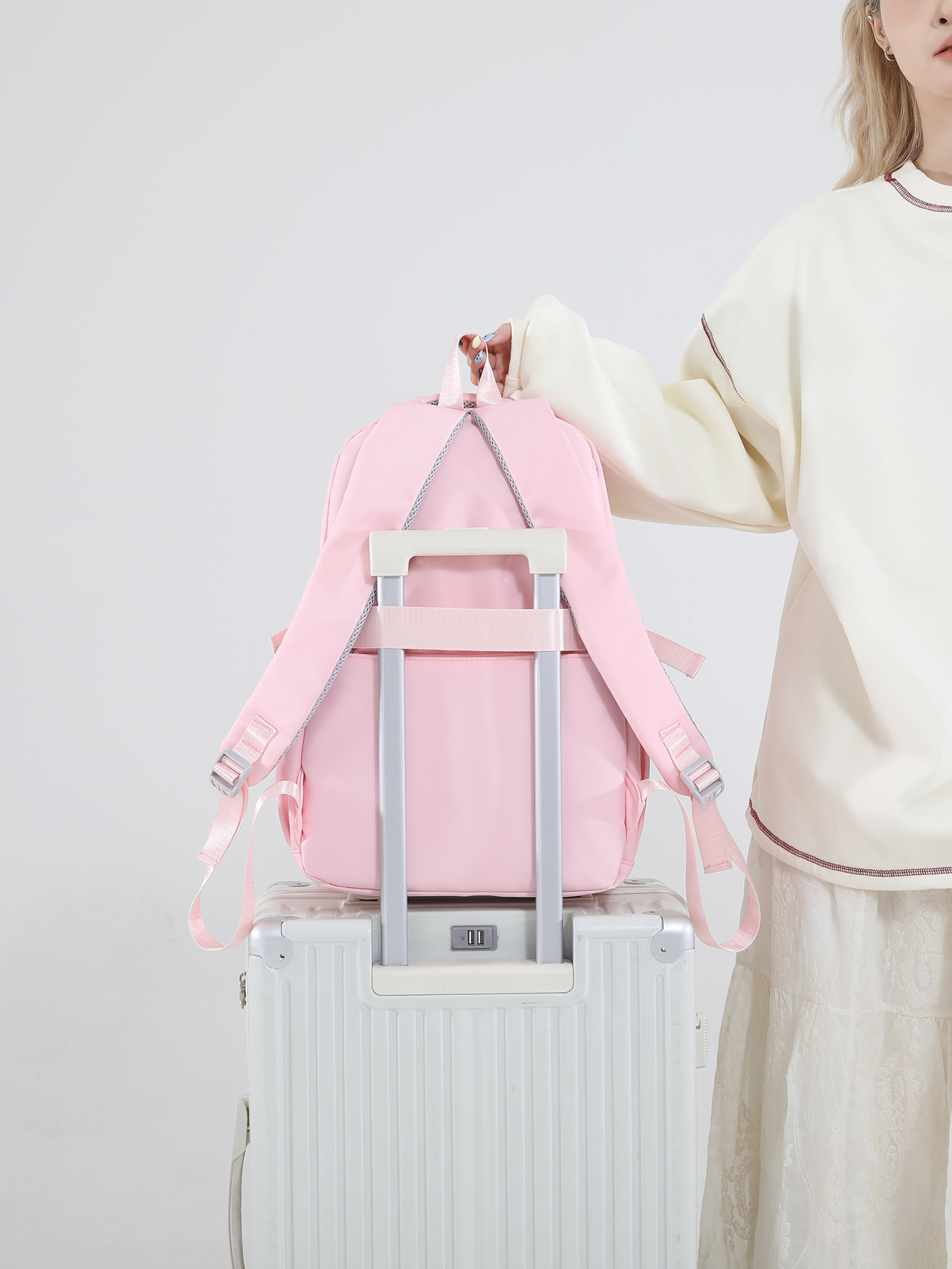 국경을 넘는 인기 상품, 심플한 중학생 책가방, 야외 여행용 백팩, 여성용 트롤리형 백팩, 휴대용 캐주얼 다용도 백팩