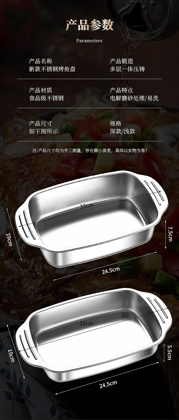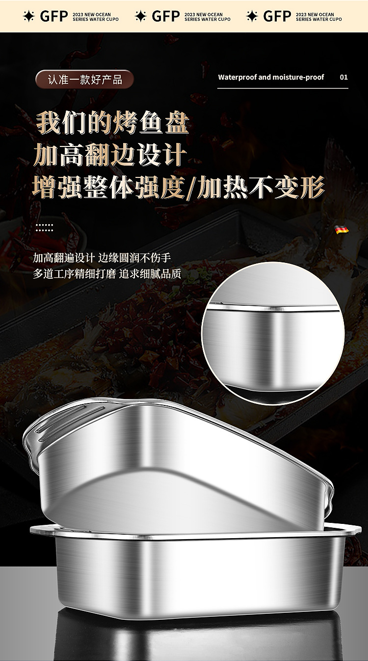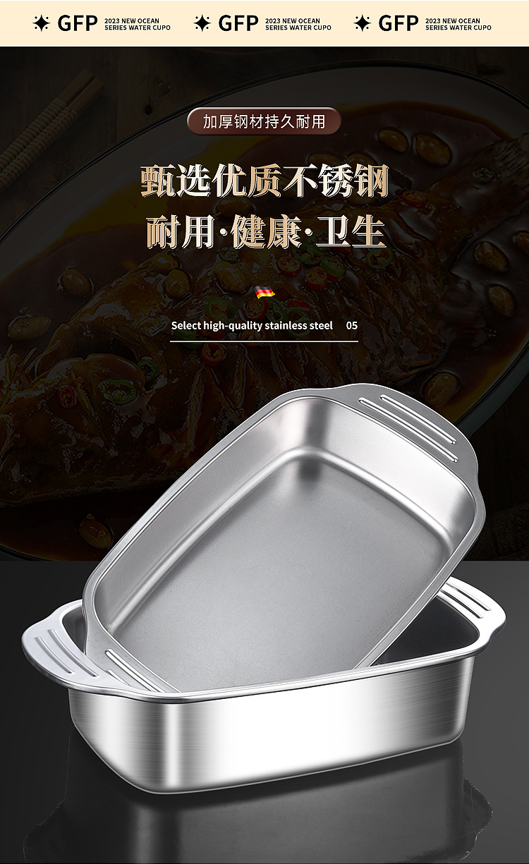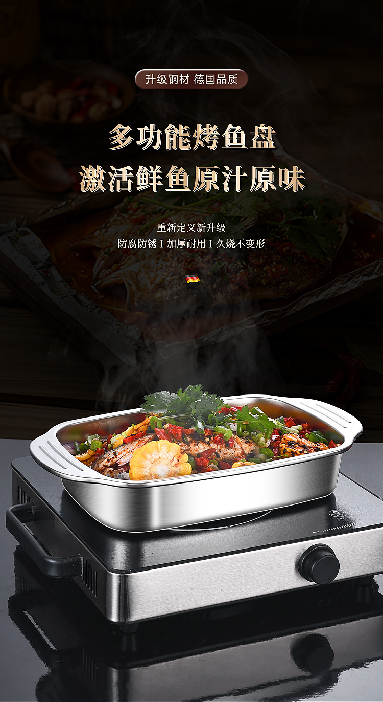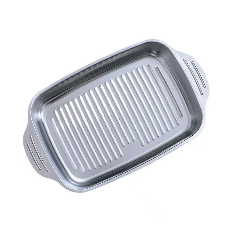 공장 도매 스테인레스 스틸 구운 생선 팬 건조 팬 상업 심화 긴 트레이 가정용 바이 노럴 그릴 팬 플랫 바닥 팬