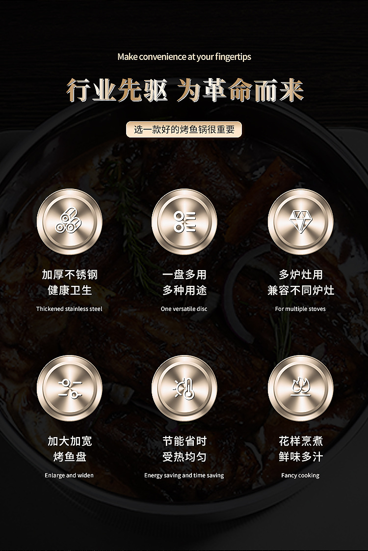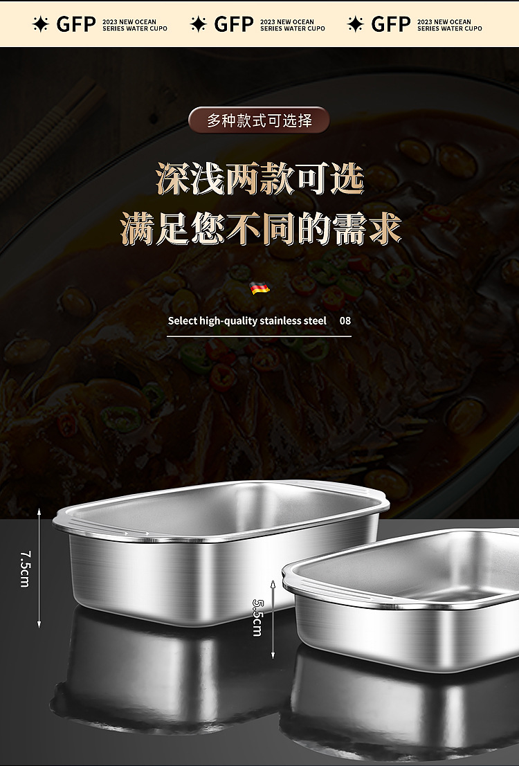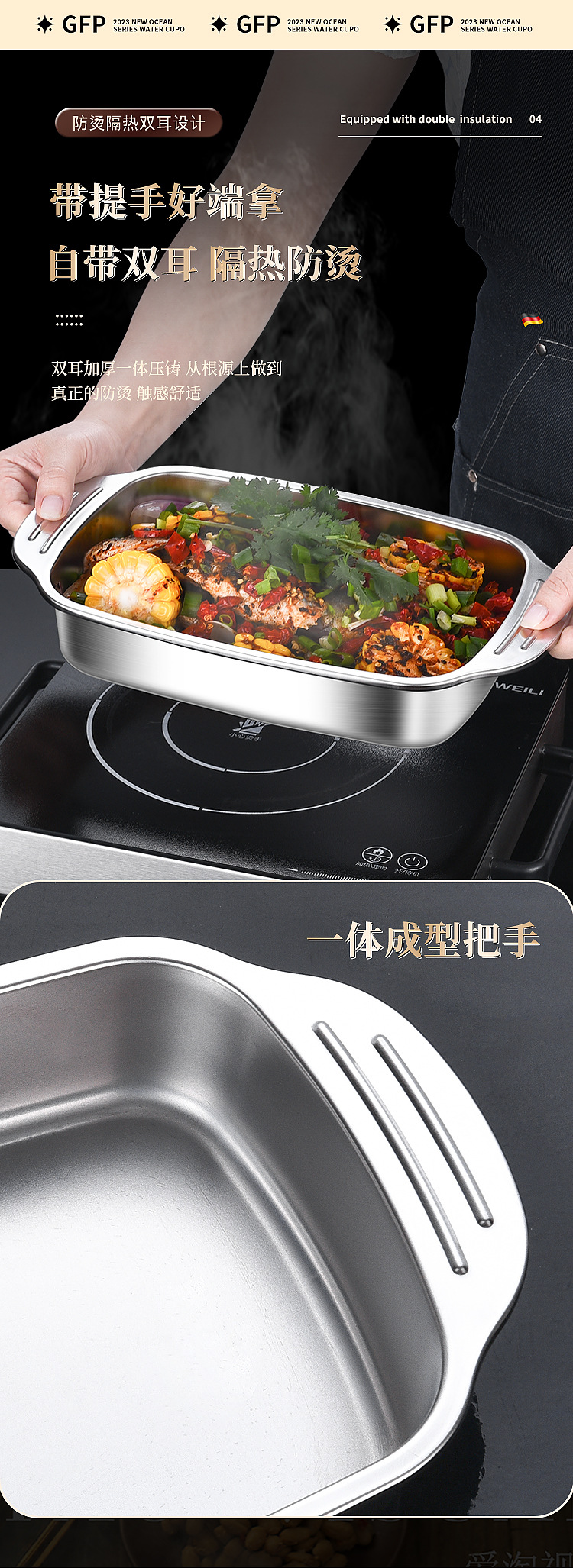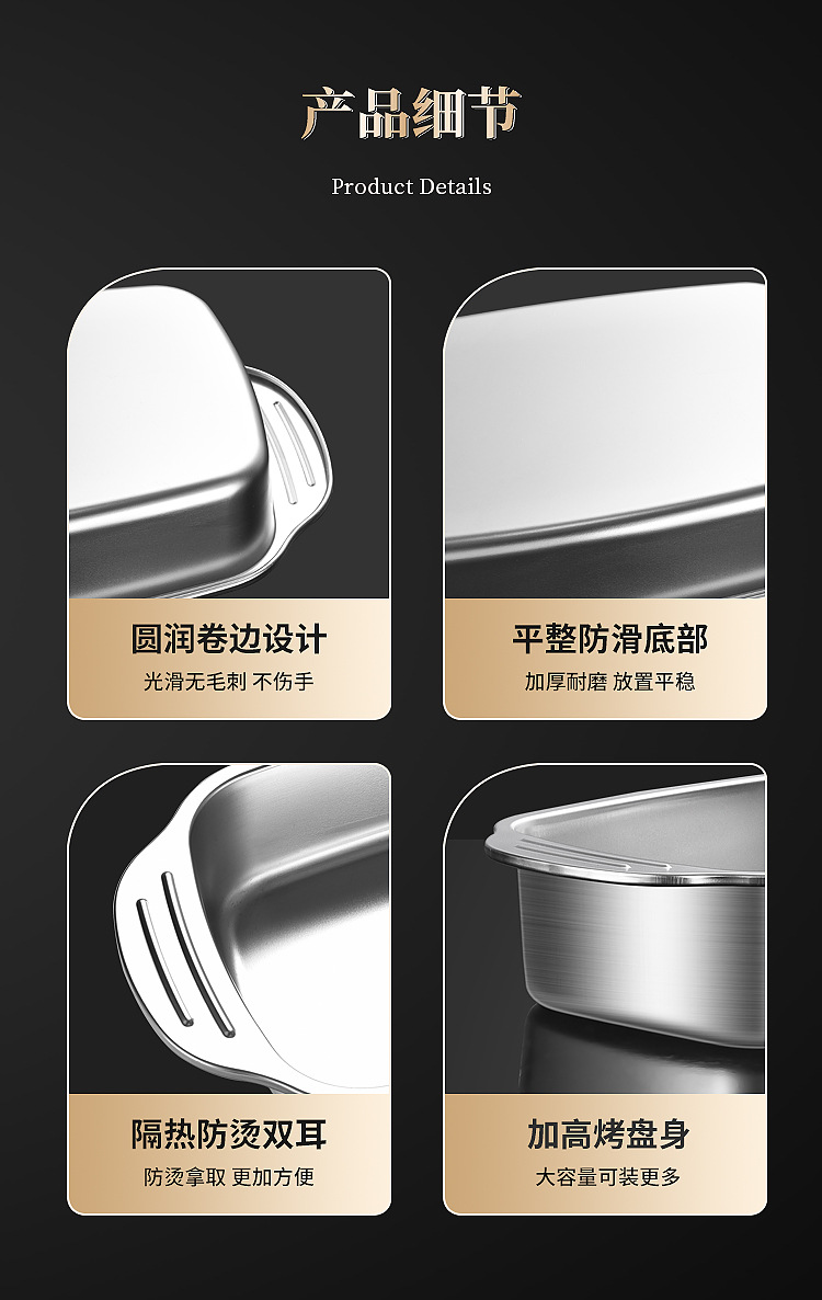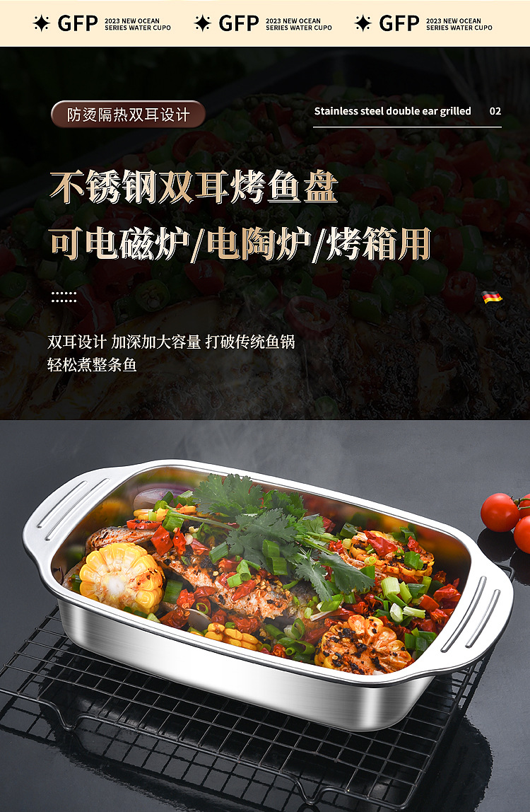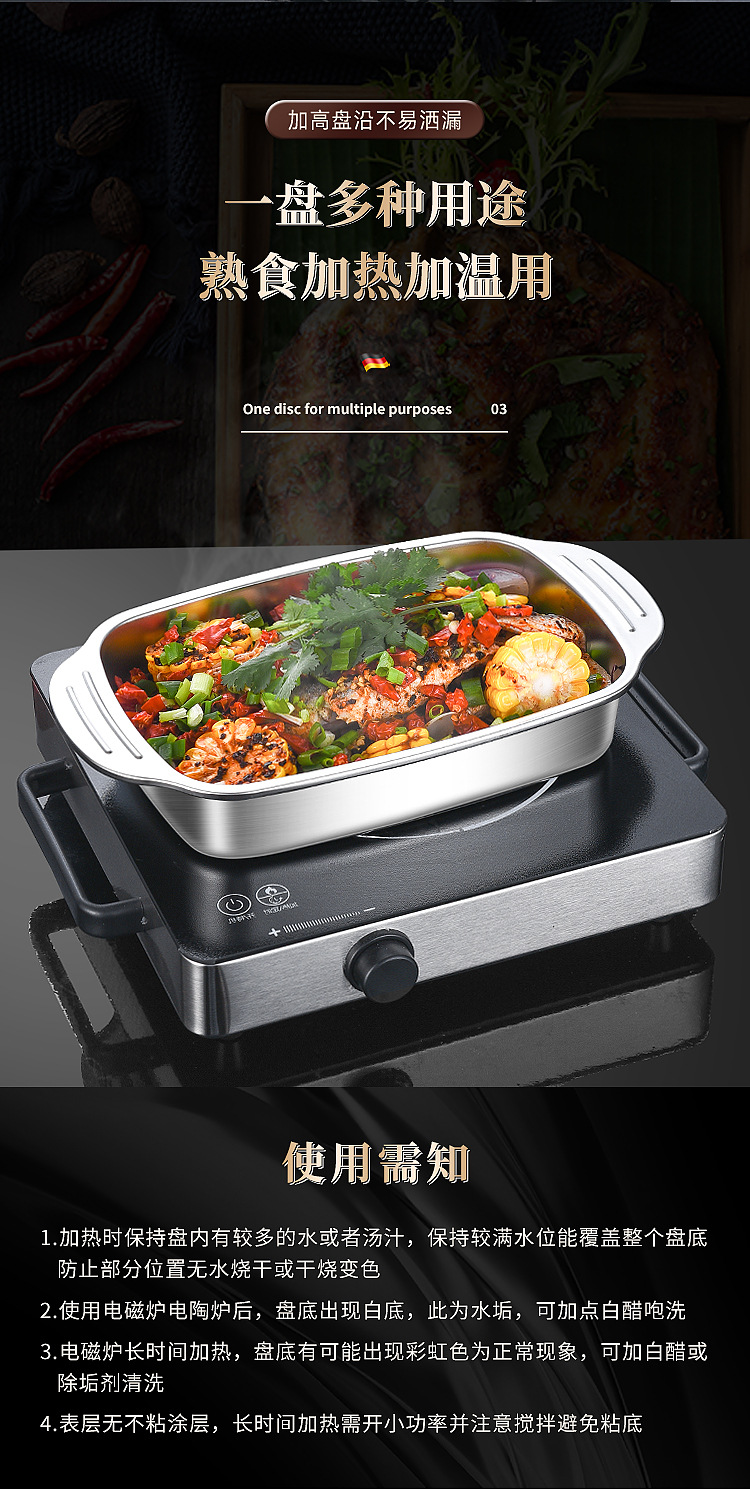공장 도매 스테인레스 스틸 구운 생선 팬 건조 팬 상업 심화 긴 트레이 가정용 바이 노럴 그릴 팬 플랫 바닥 팬