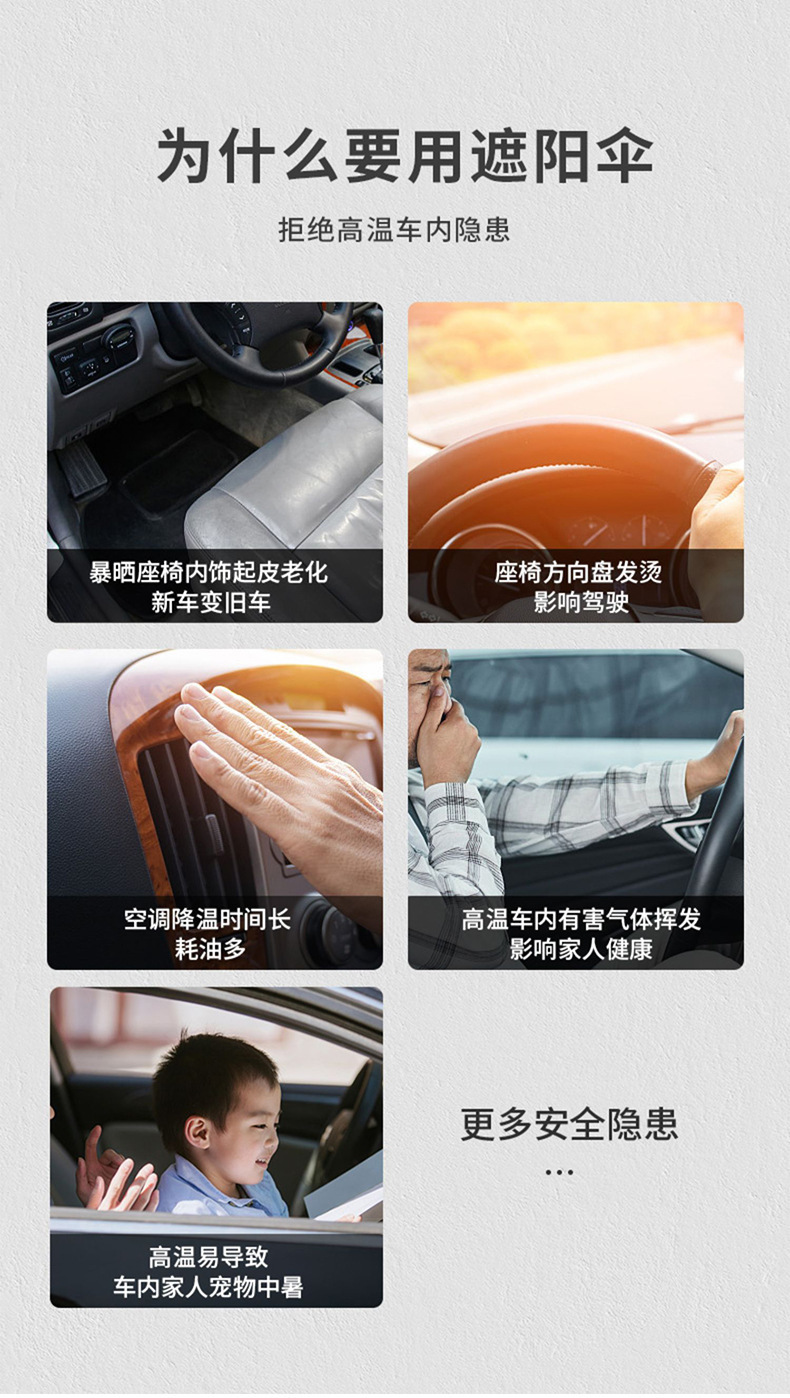强烈的阳光从侧窗直射进来,不仅刺眼,影响驾车,难以忍受,高温还会损坏到车内的真皮内饰,本遮阳挡,有效隔热及高温照射,方便使用!