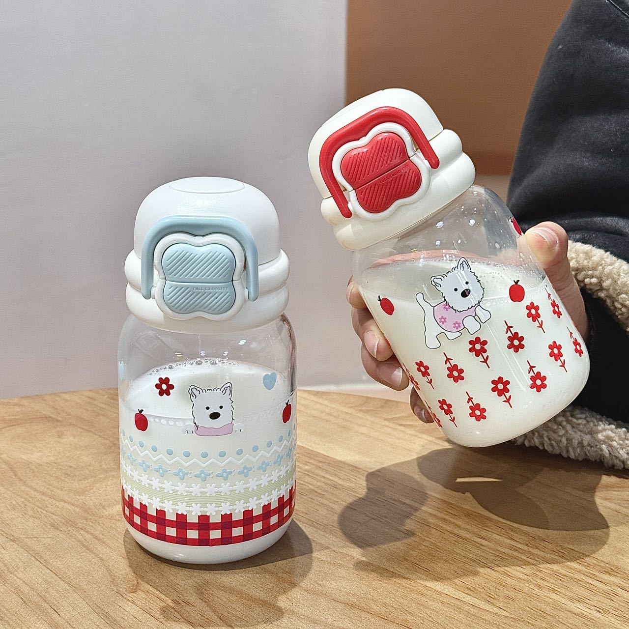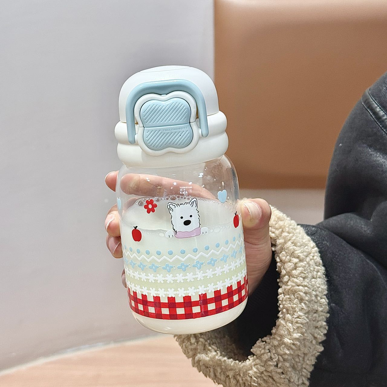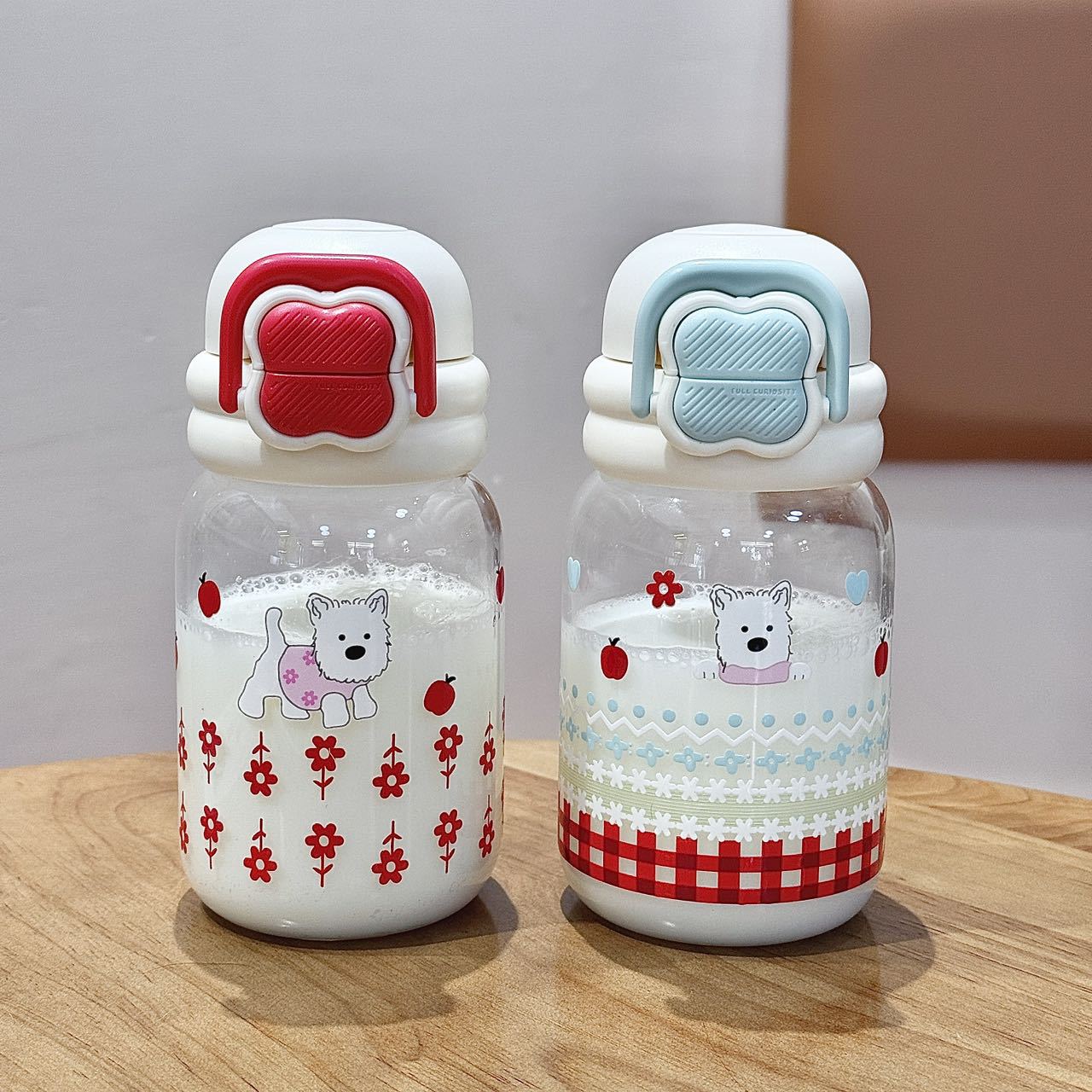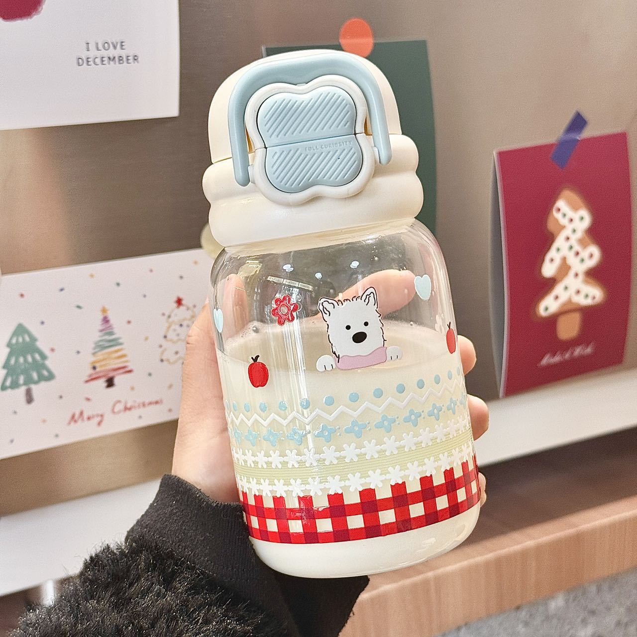 귀여운 더블 음료 만화 새로운 물 컵 유리 휴대용 컵 강아지 인터넷 축하 높은 붕규산 우유 분말 선물