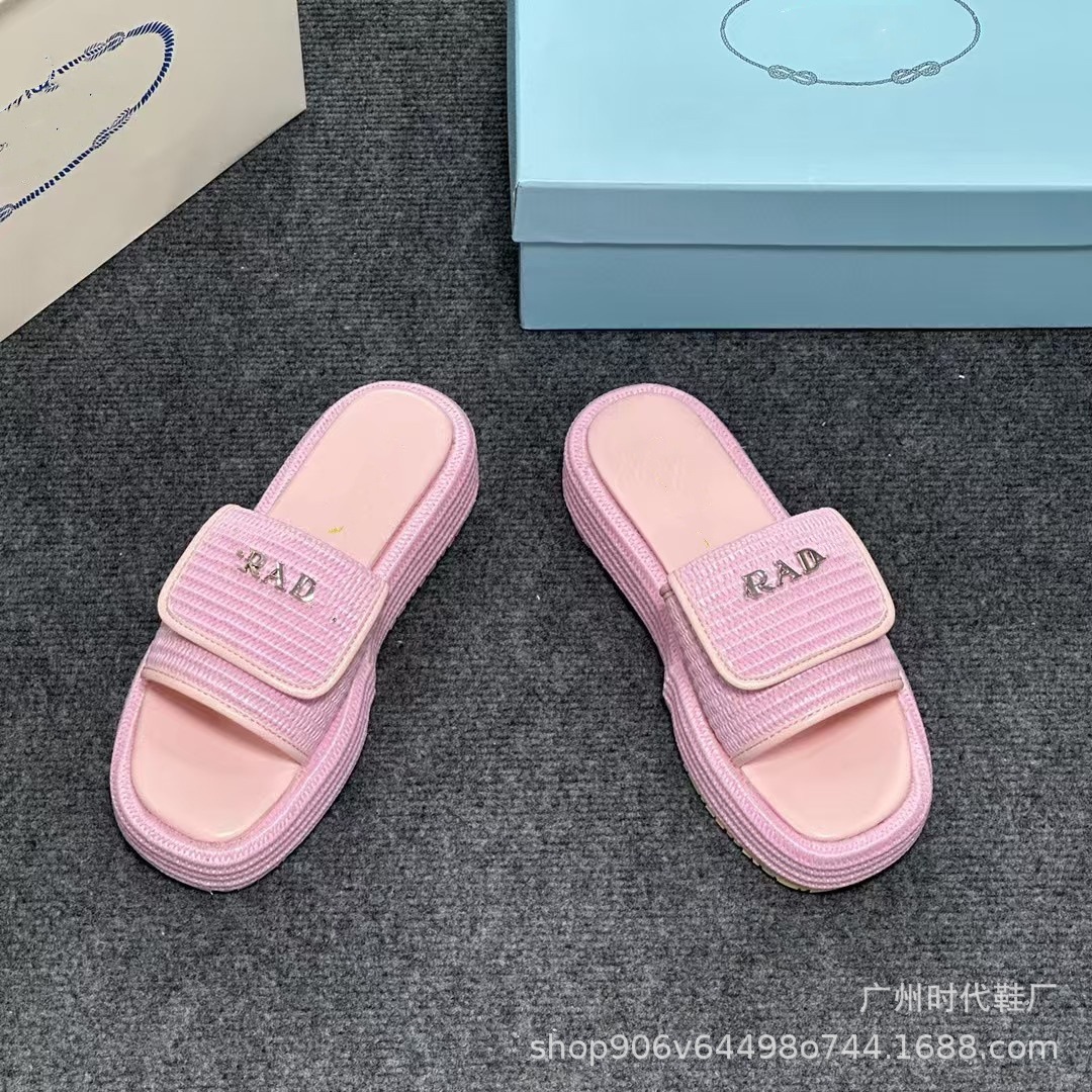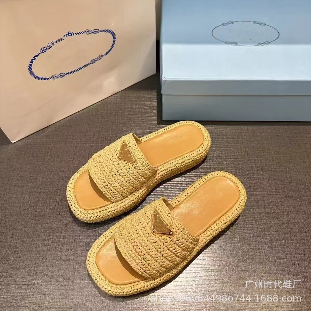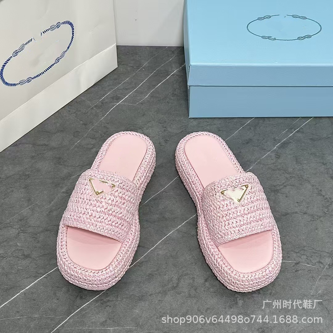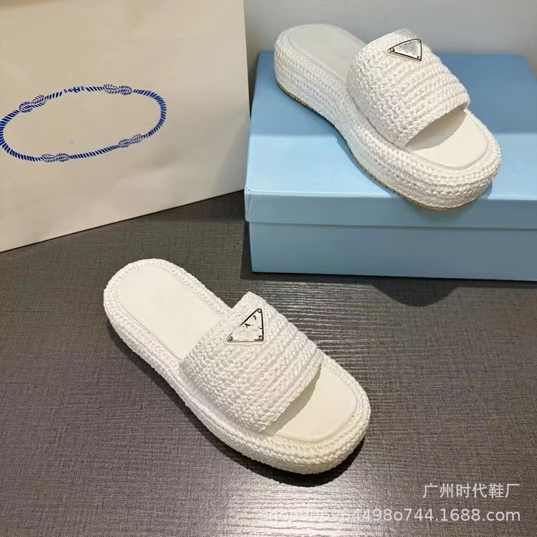 2024 여름 새 편지 짠 삼각형 슬리퍼 두꺼운 바닥 캐주얼 해변 외부 착용스토어 가기