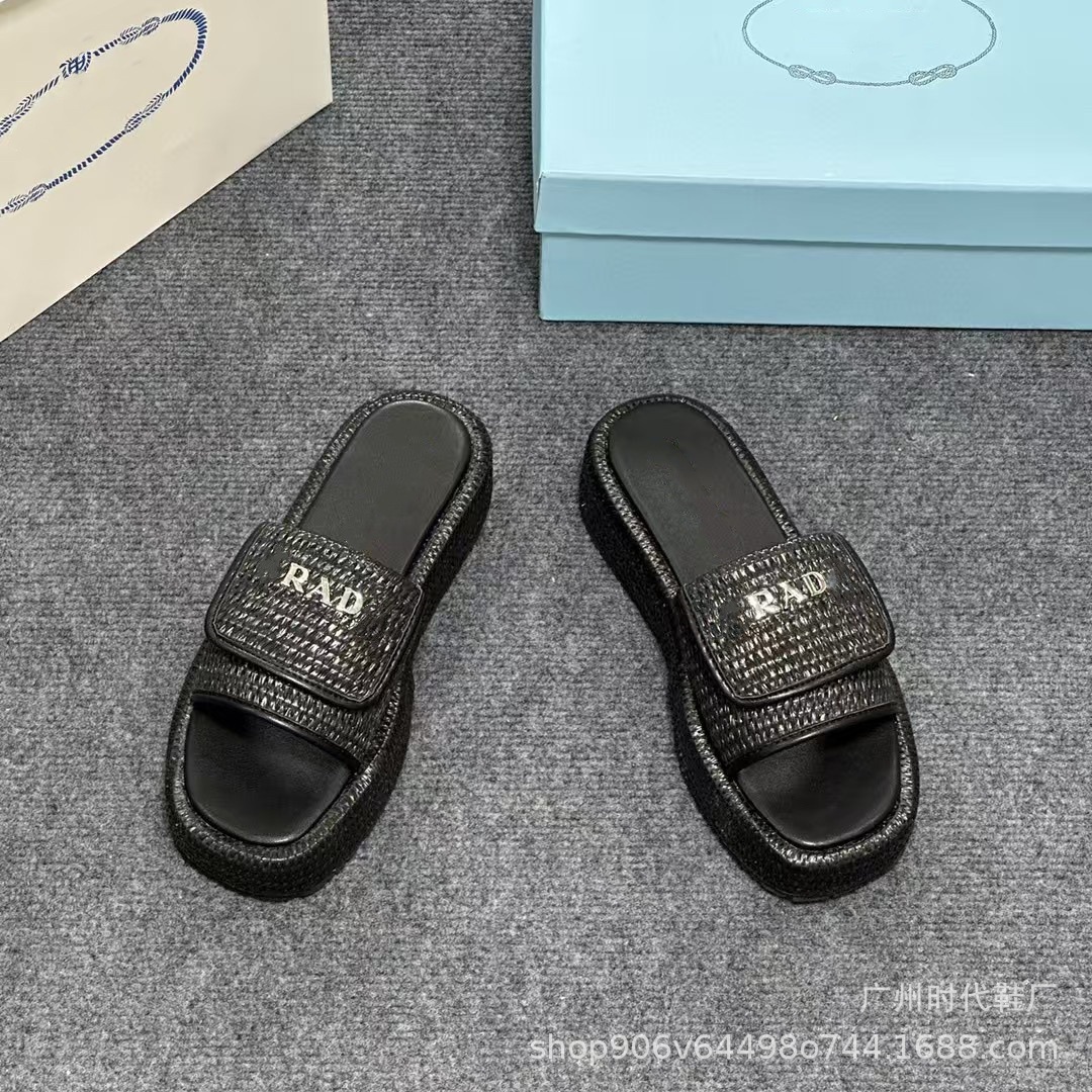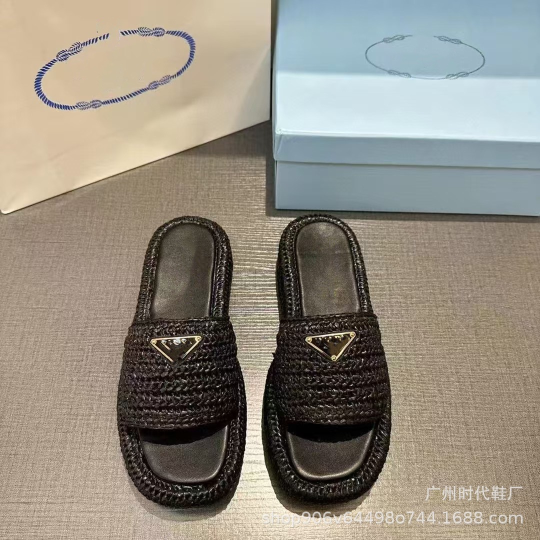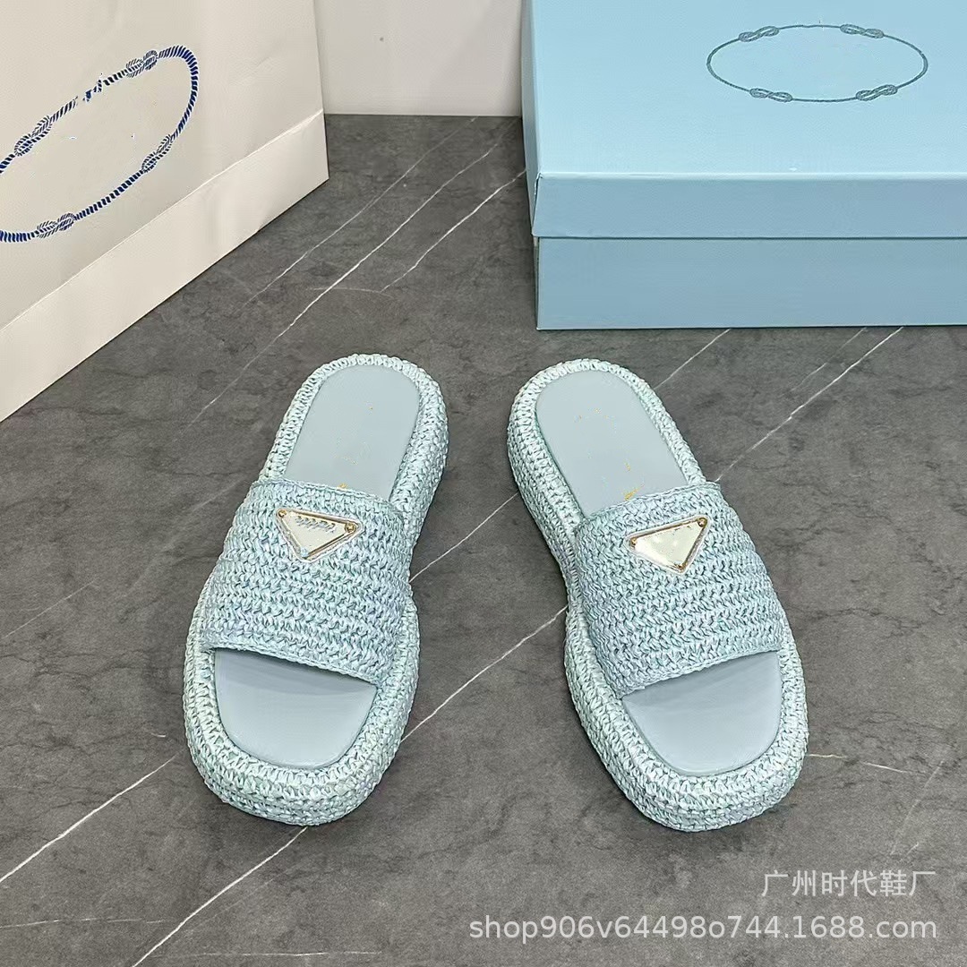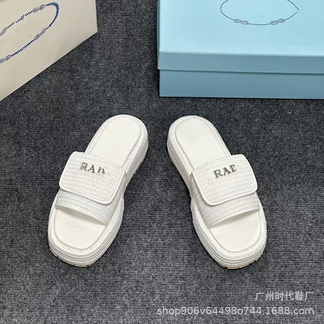 2024 여름 새 편지 짠 삼각형 슬리퍼 두꺼운 바닥 캐주얼 해변 외부 착용스토어 가기