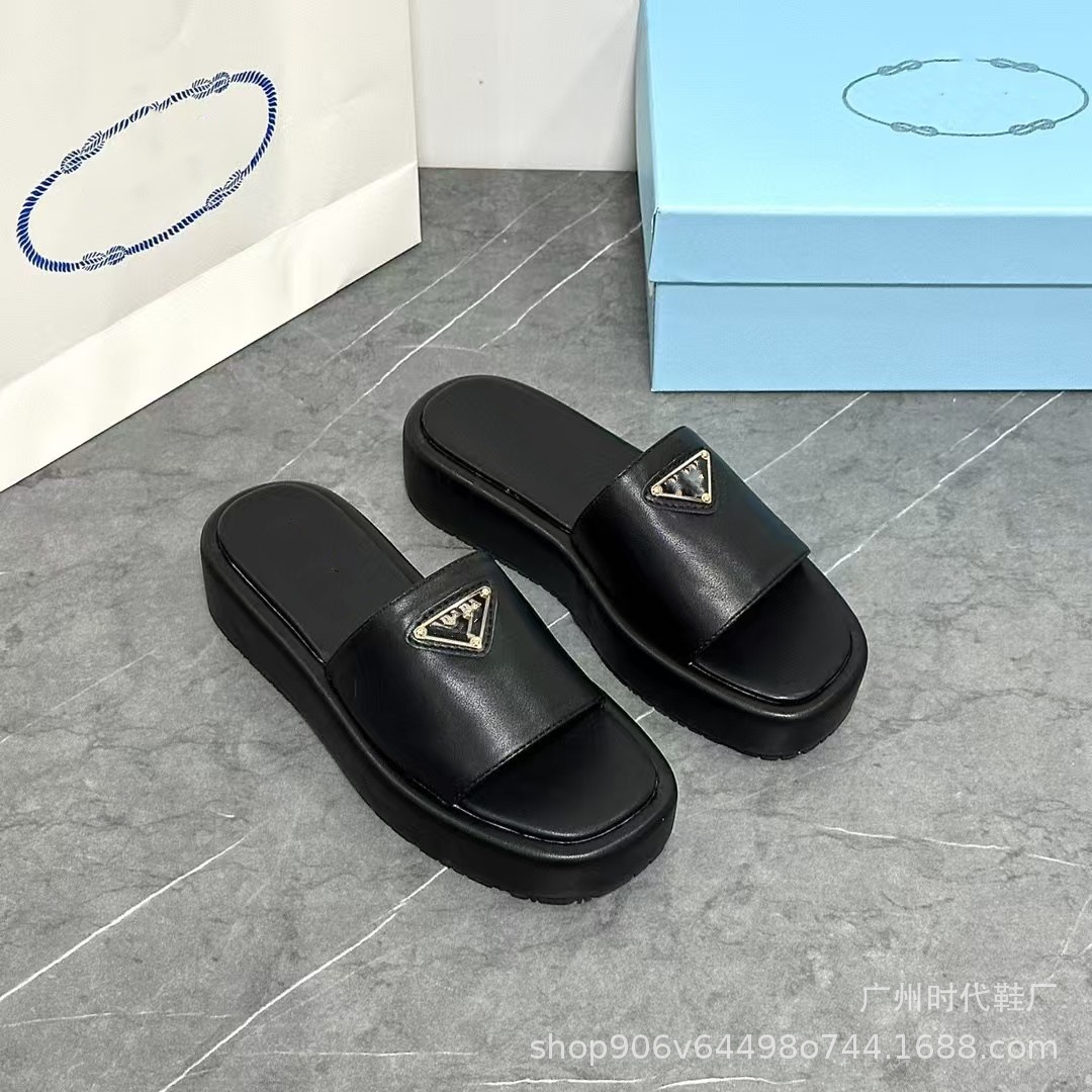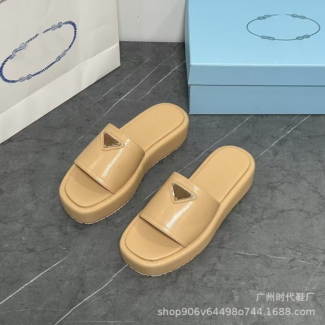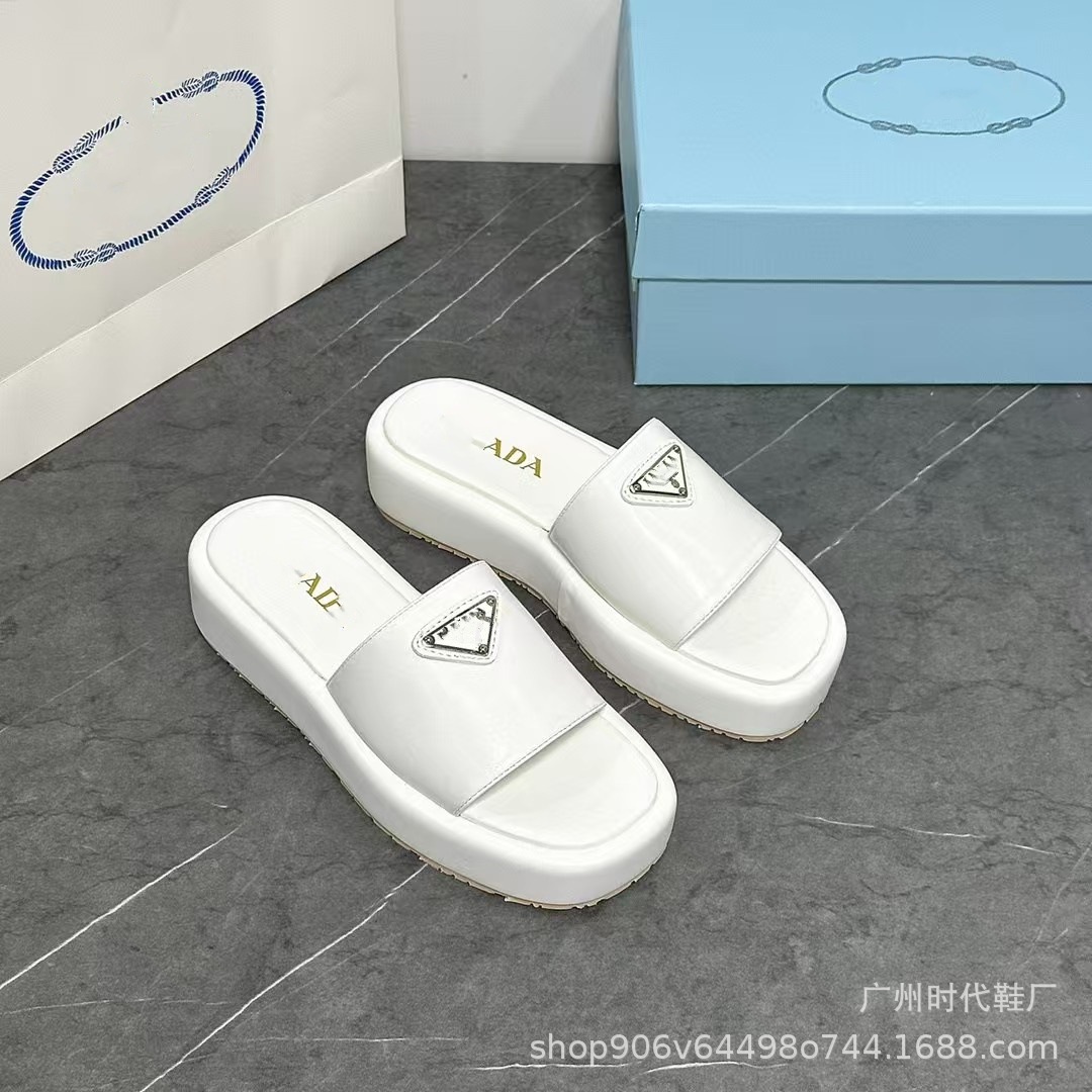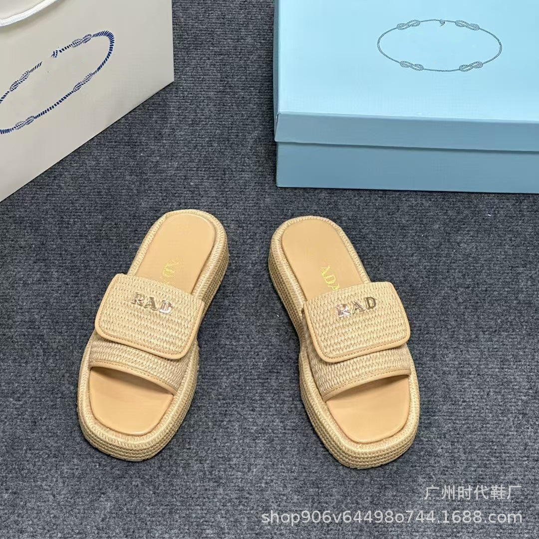 2024 여름 새 편지 짠 삼각형 슬리퍼 두꺼운 바닥 캐주얼 해변 외부 착용스토어 가기
