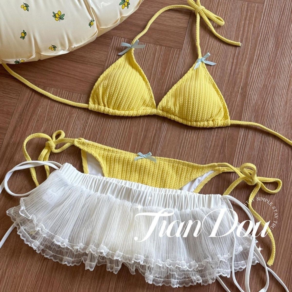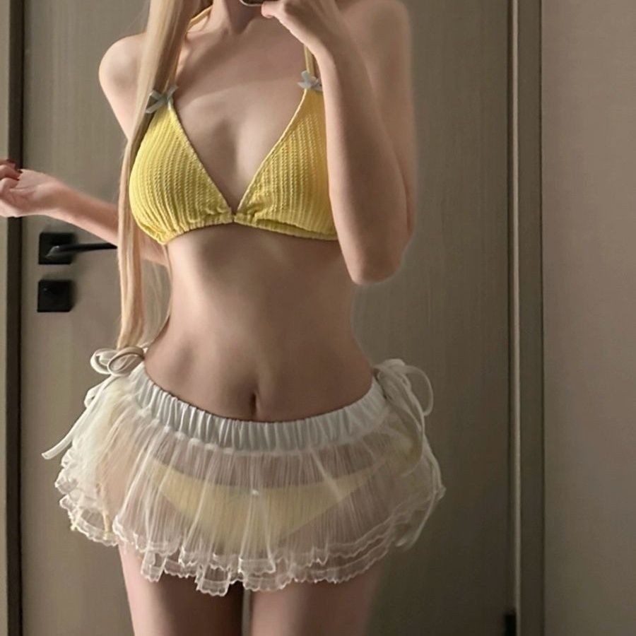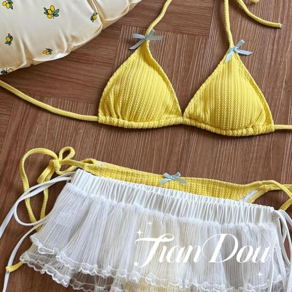 • 노란색 비키니 + 흰색 레이스 스커트