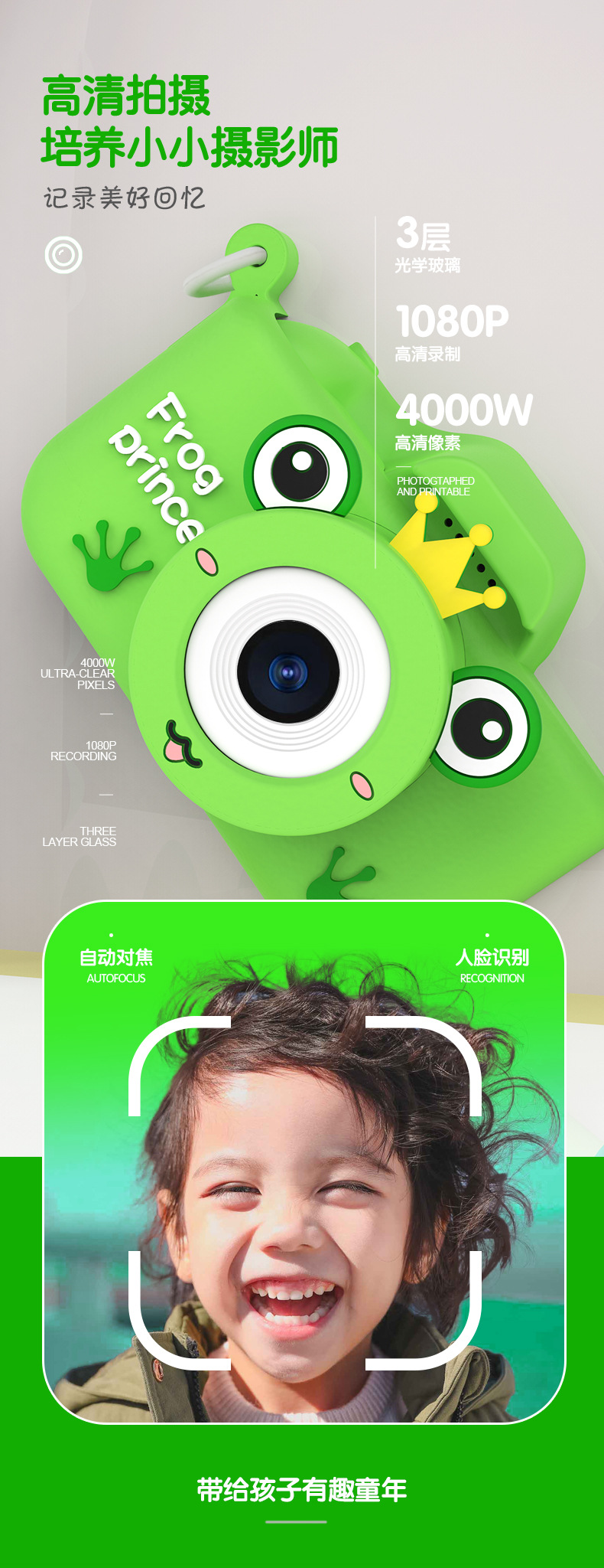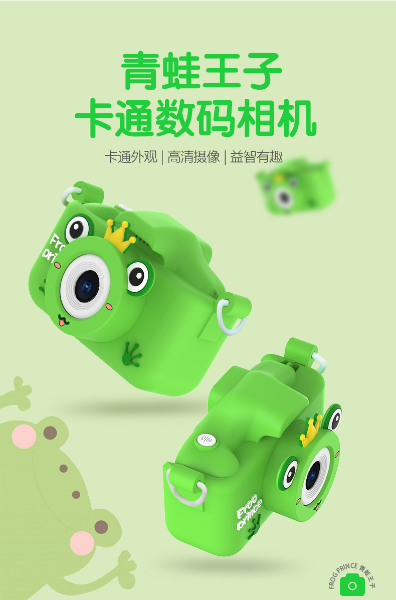 새로운 사진 촬영 가능한 비디오 HD 더블 샷 개구리 프린스 어린이 카메라 만화 퍼즐 드롭 방지 디지털 카메라스토어 가기