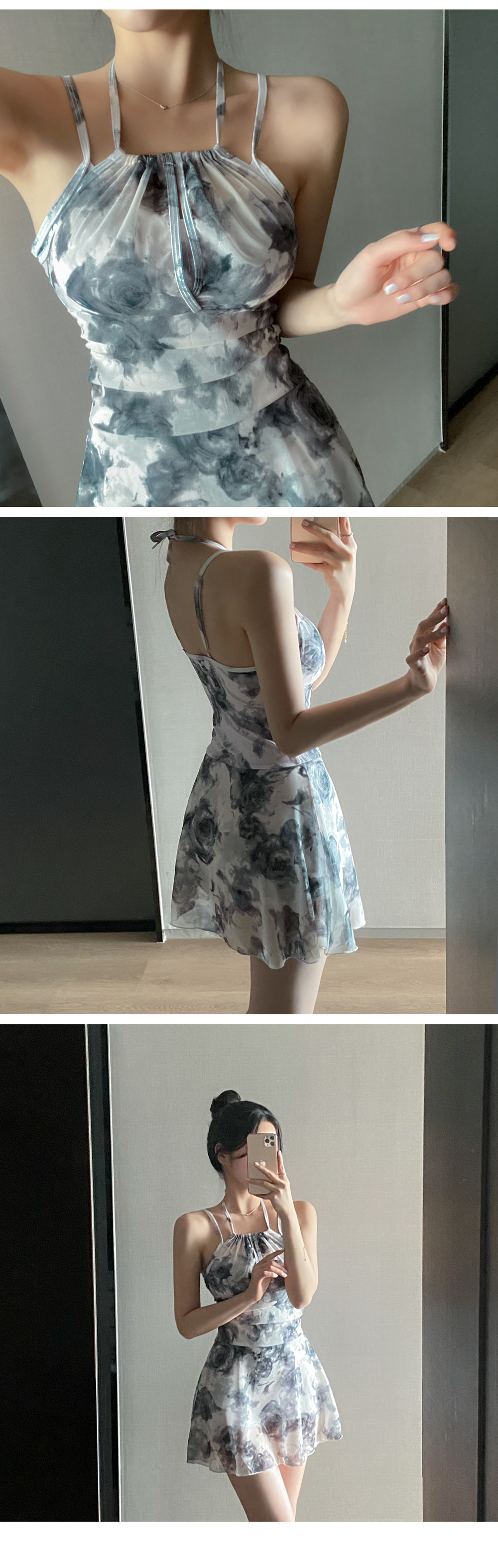 수영복 여성용 타이 다이 스타일 슬림 룩 스파이스 소녀 꽃 디자인 수영복 한국 스타일 원피스 스타일 신선한 스타일 보수적 슬링스토어 가기