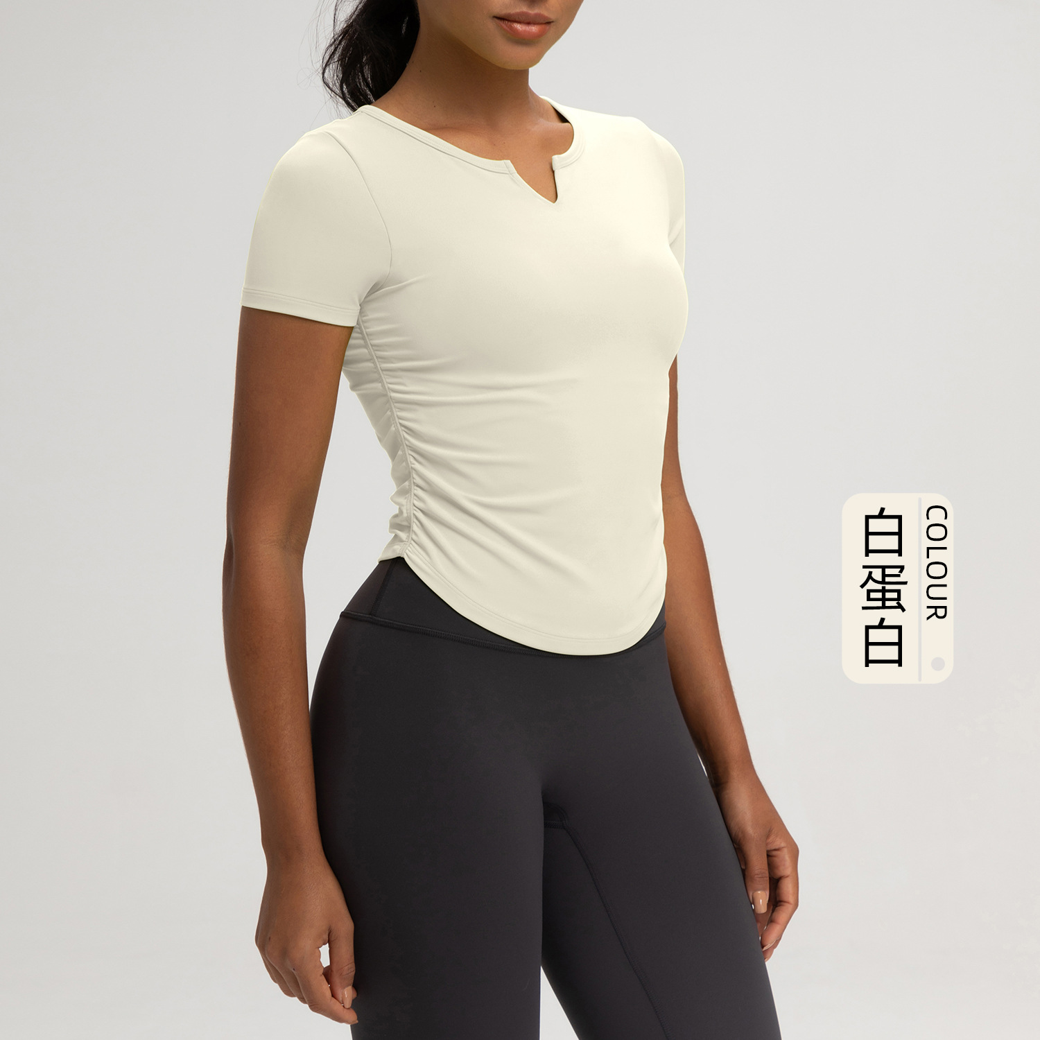 여름 새로운 스포츠 반팔 티셔츠 여성용 슬림 핏 V 넥 피트니스 탑 가슴 패드 달리기 스포츠 요가 옷스토어 가기