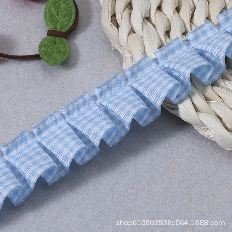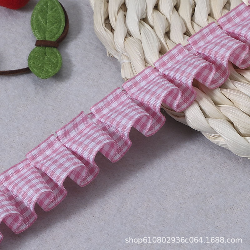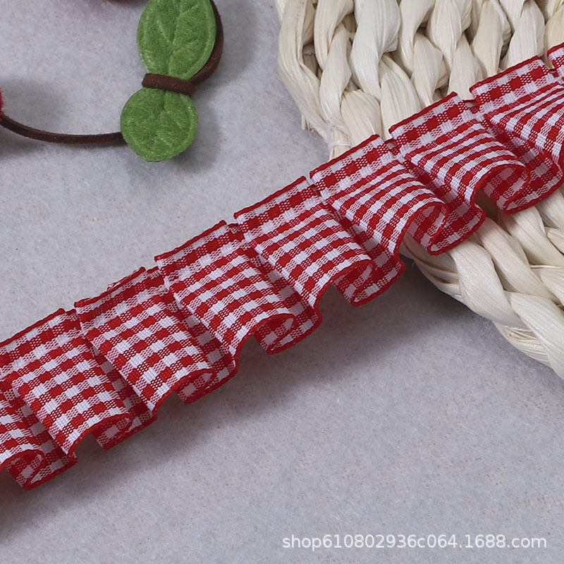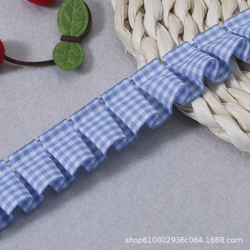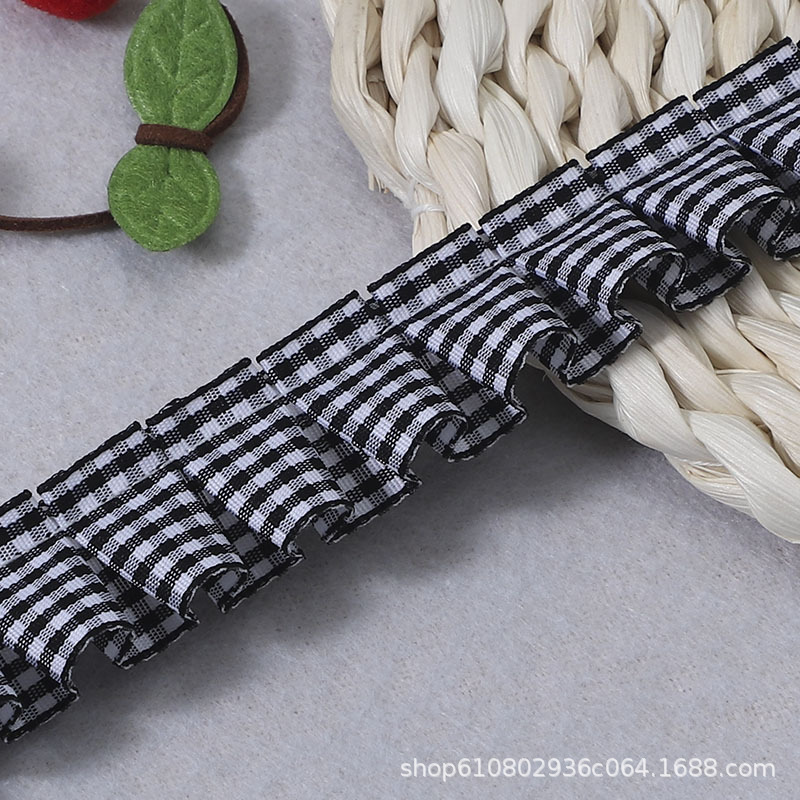재고 도매 2.5cm 체크 무늬 주름 레이스 수제 DIY 가방 의류 인형 스커트 연꽃 잎 레이스 액세서리스토어 가기