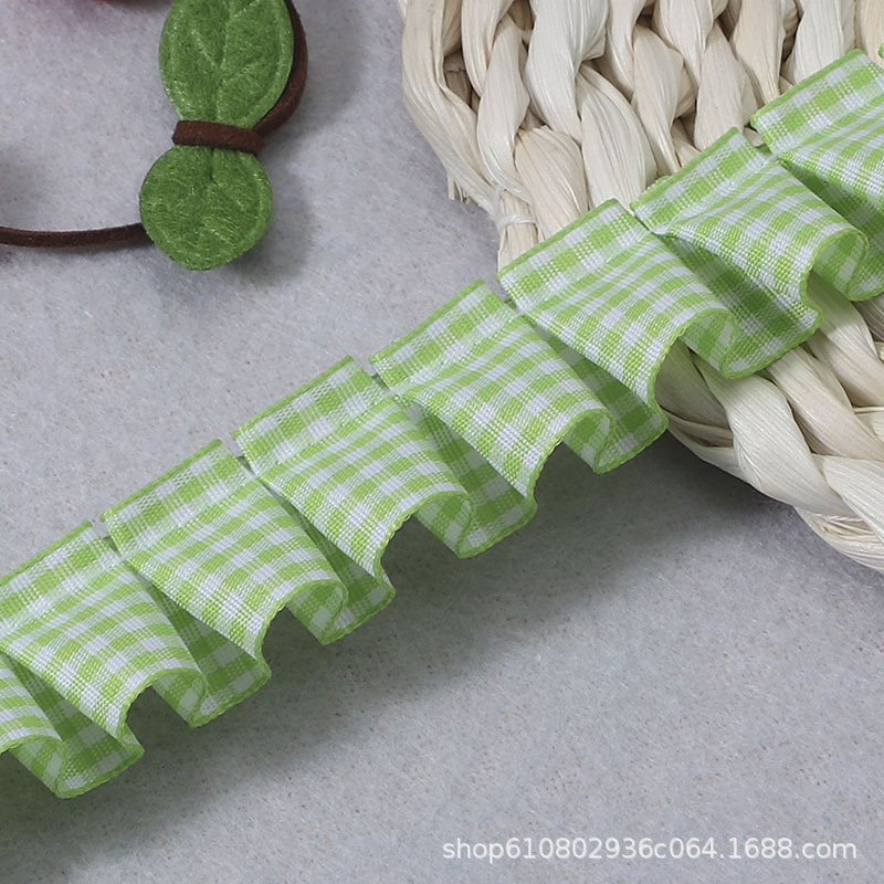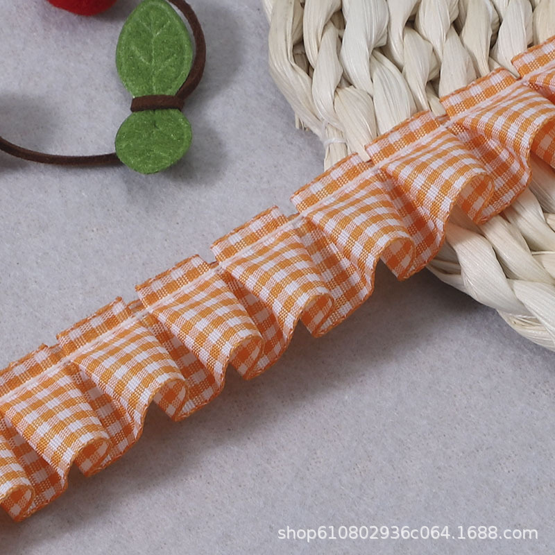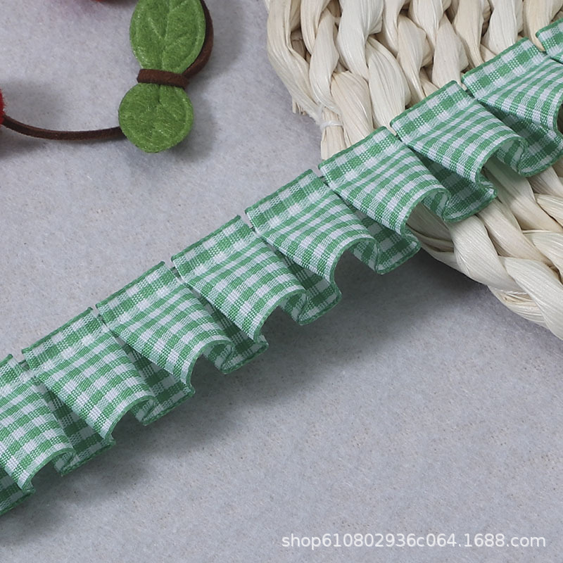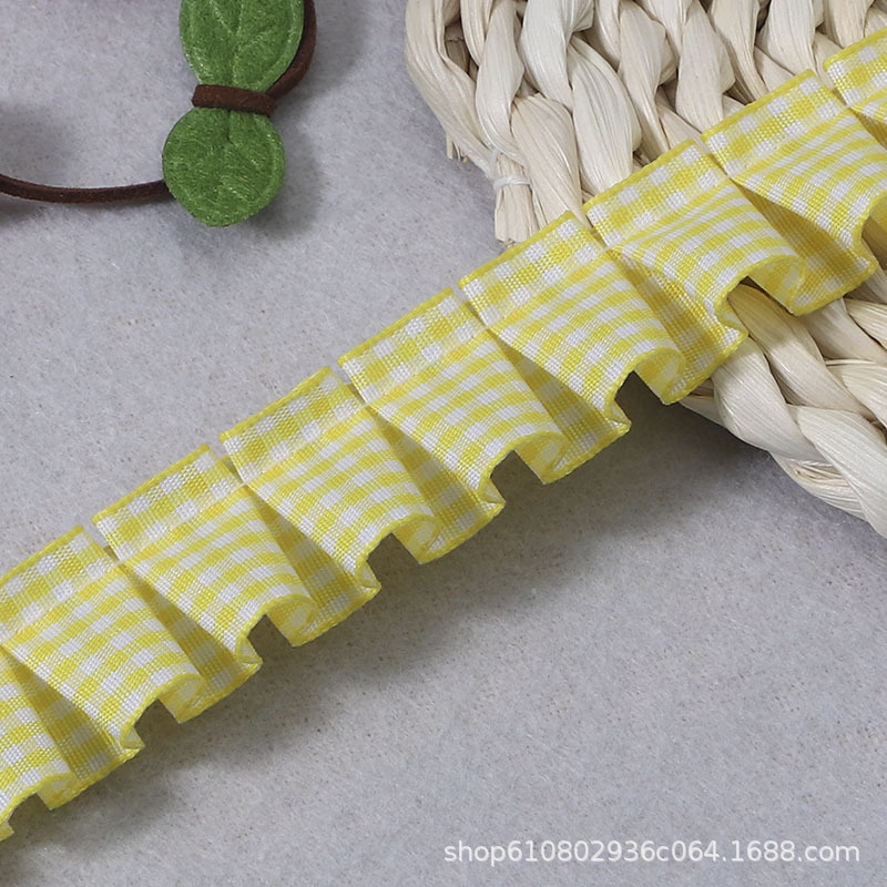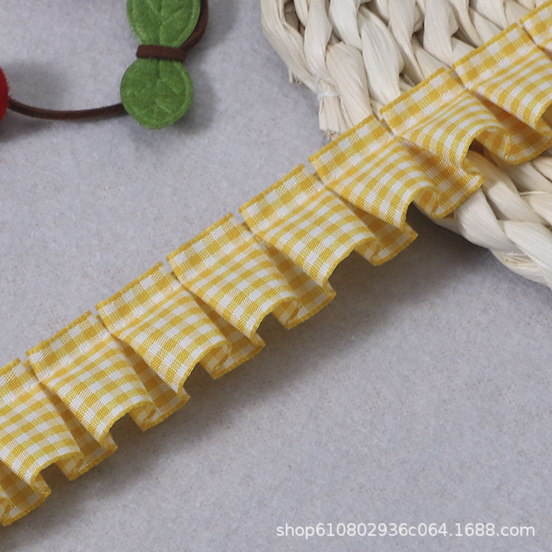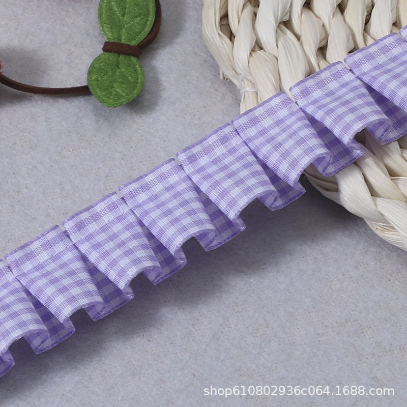 재고 도매 2.5cm 체크 무늬 주름 레이스 수제 DIY 가방 의류 인형 스커트 연꽃 잎 레이스 액세서리스토어 가기