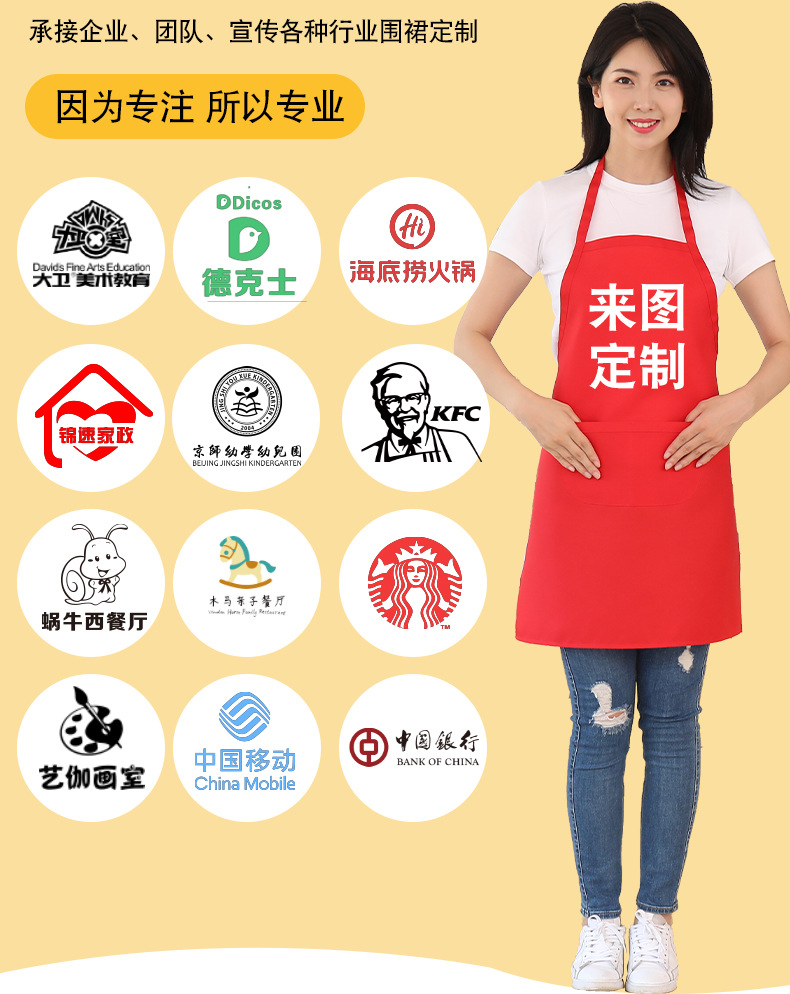 광고 앞치마 커스텀 주방 방오 및 안티 오일 오버볼 호텔 케이터링 핫 팟 샵 KTV 남성 및 여성 작업복 인쇄스토어 가기