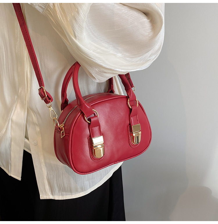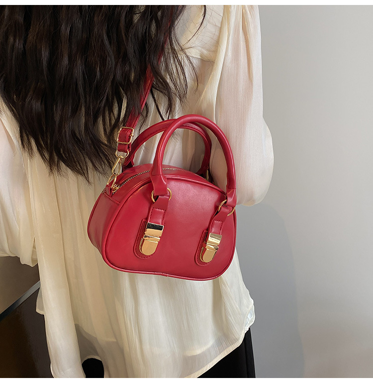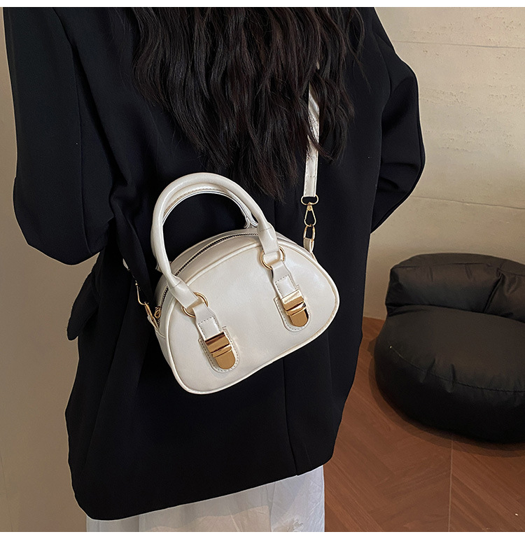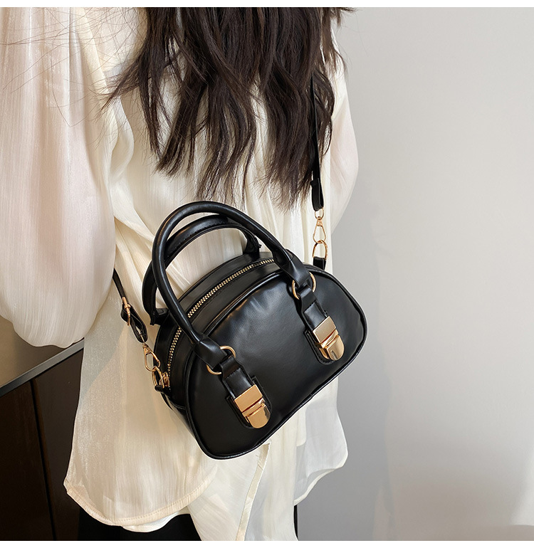 휴대용 보스턴 가방 여성 2025 새로운 통근 하이 엔드 질감 틈새 디자인 오일 왁스 가죽 크로스 바디 베개 가방