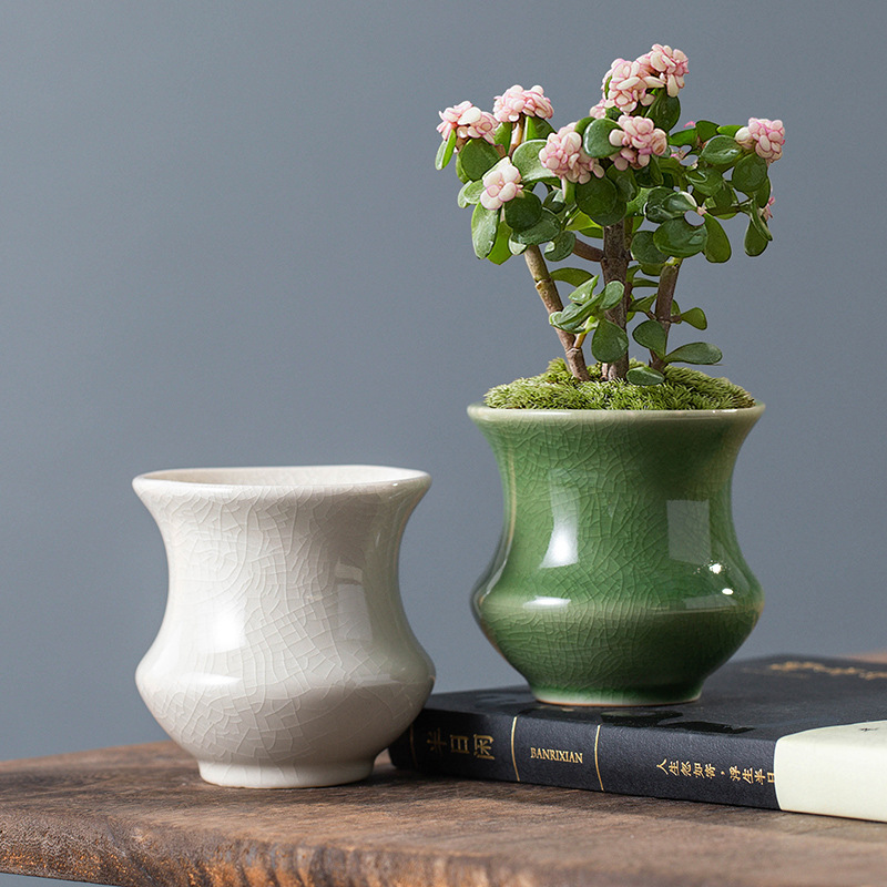 새로운 Ge 가마 얼음 균열 오픈 컨테이너 작은 데스크탑 녹색 식물 수경 녹색 장미 구리 돈 잔디 다육 화분 세라믹 도매