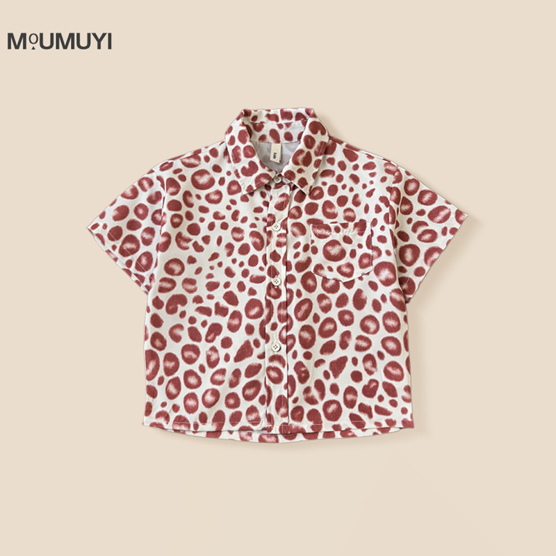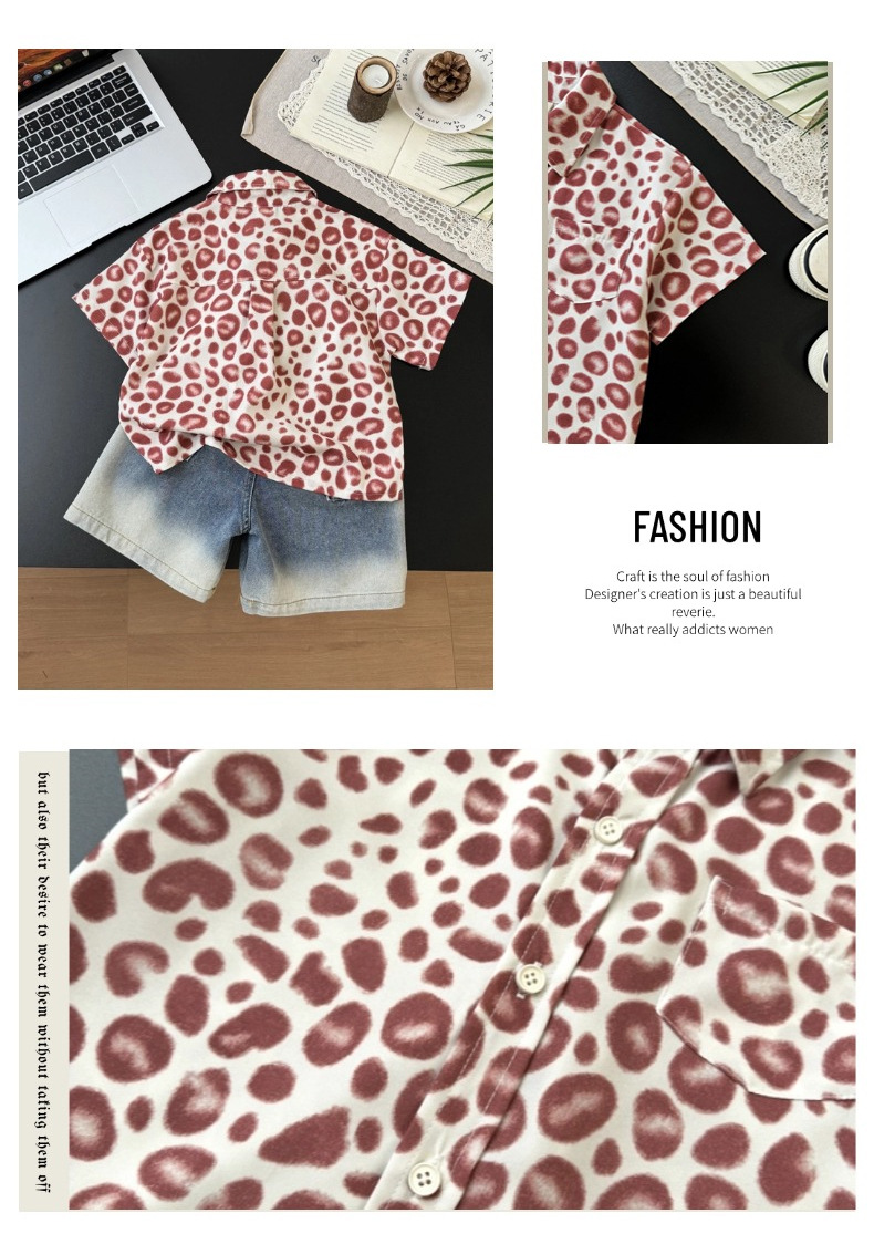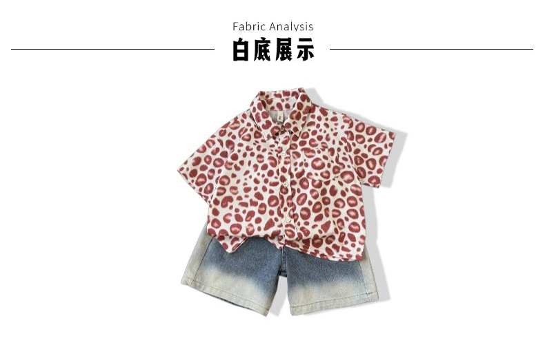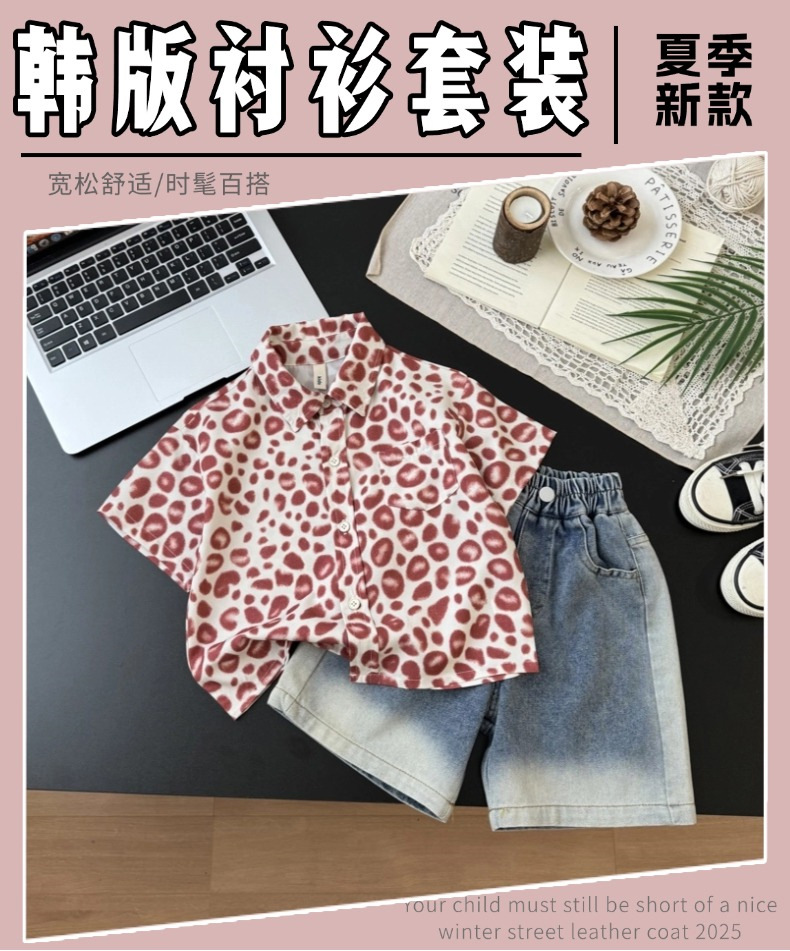 남자들의 여름 세트 2025 여름 새로운 서양식 어린이 아기 캐주얼 레오파드 무늬 반팔 셔츠 투피스 유행 세트스토어 가기