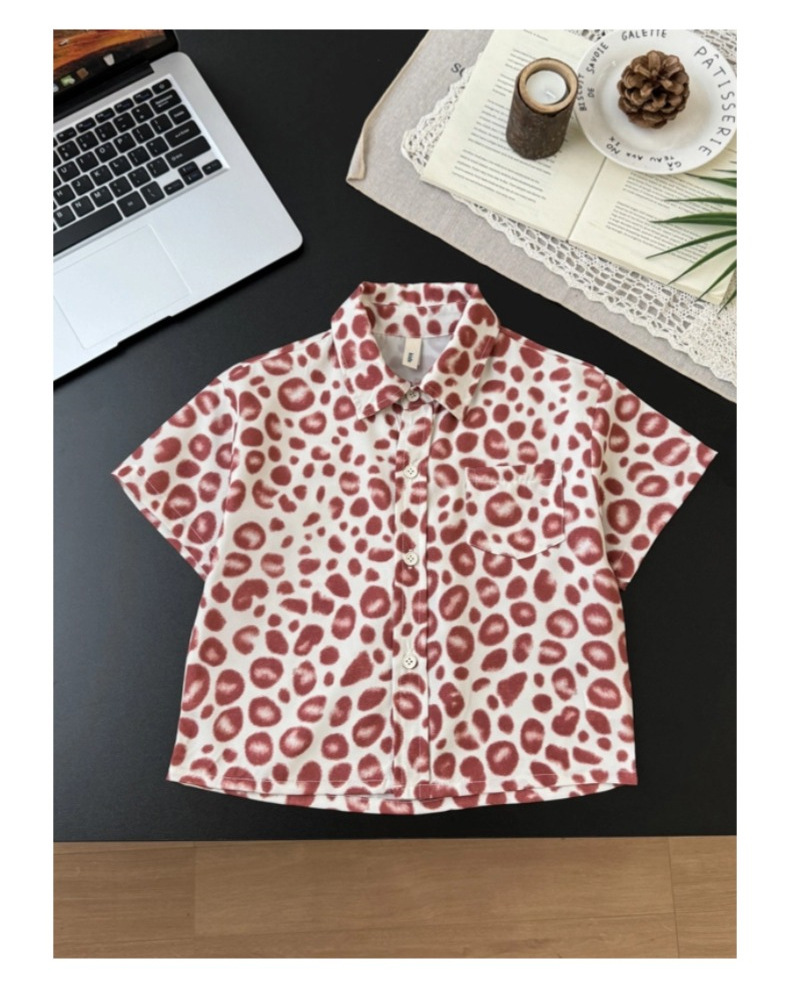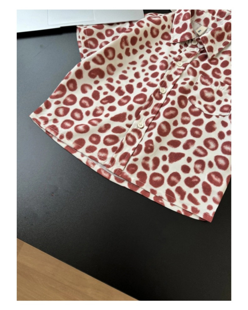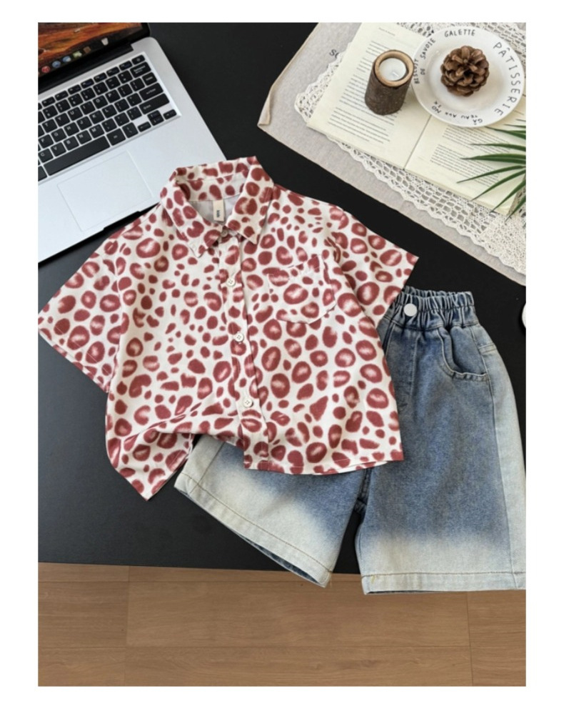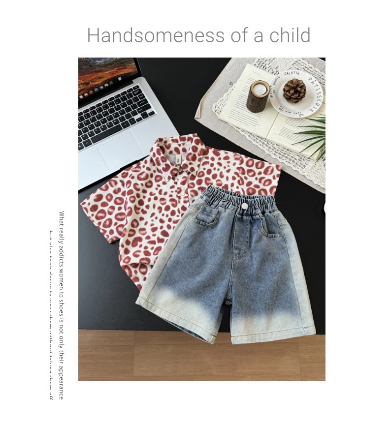 남자들의 여름 세트 2025 여름 새로운 서양식 어린이 아기 캐주얼 레오파드 무늬 반팔 셔츠 투피스 유행 세트